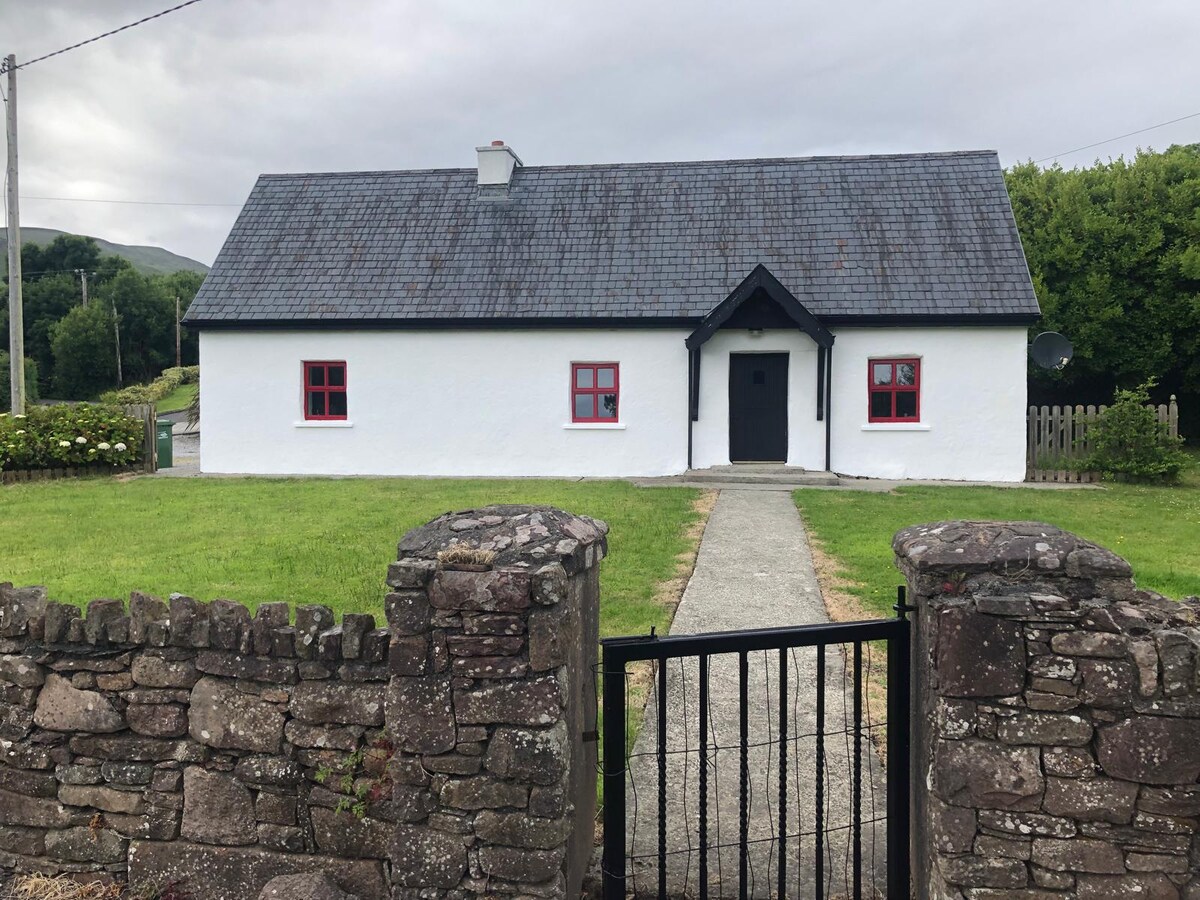 Tempat peristirahatan pondok satu lantai terpisah berada di lokasi pedesaan yang tenang dan damai. Tempat ini memiliki pemandangan langsung Macguillycuddy Reeks ke depan dan The Slieve Mish Mountains di bagian belakang. Terletak dengan nyaman di tengah - tengah Kerry di semenanjung Dingle di lokasi ideal untuk melihat - lihat, lintas alam, bersepeda, berselancar, bermain golf, dll. Baru direnovasi dengan semua fasilitas mod. Taman dewasa dengan tempat duduk luar ruangan. Area parkir pribadi yang aman.