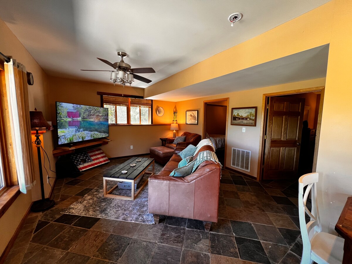 Rivertown Retreat terletak kurang dari 2 mil dari Sungai Jacks Fork dan berkendara singkat ke Current. Rumah 2 kamar tidur ini adalah tempat yang sempurna untuk melepaskan diri dari kesibukan hidup dan bersantai. Duduklah di ayunan teras, panggang di BBQ, atau lempar frisbee di halaman besar. Baik Anda berada di Eminence untuk perjalanan mengapung menyusuri sungai, mendaki di salah satu dari banyak taman negara bagian yang ada di dekatnya, bermain trout di sungai, atau sekadar bersantai dan menikmati Ozarks, Rivertown Retreat ada di sini untuk Anda!