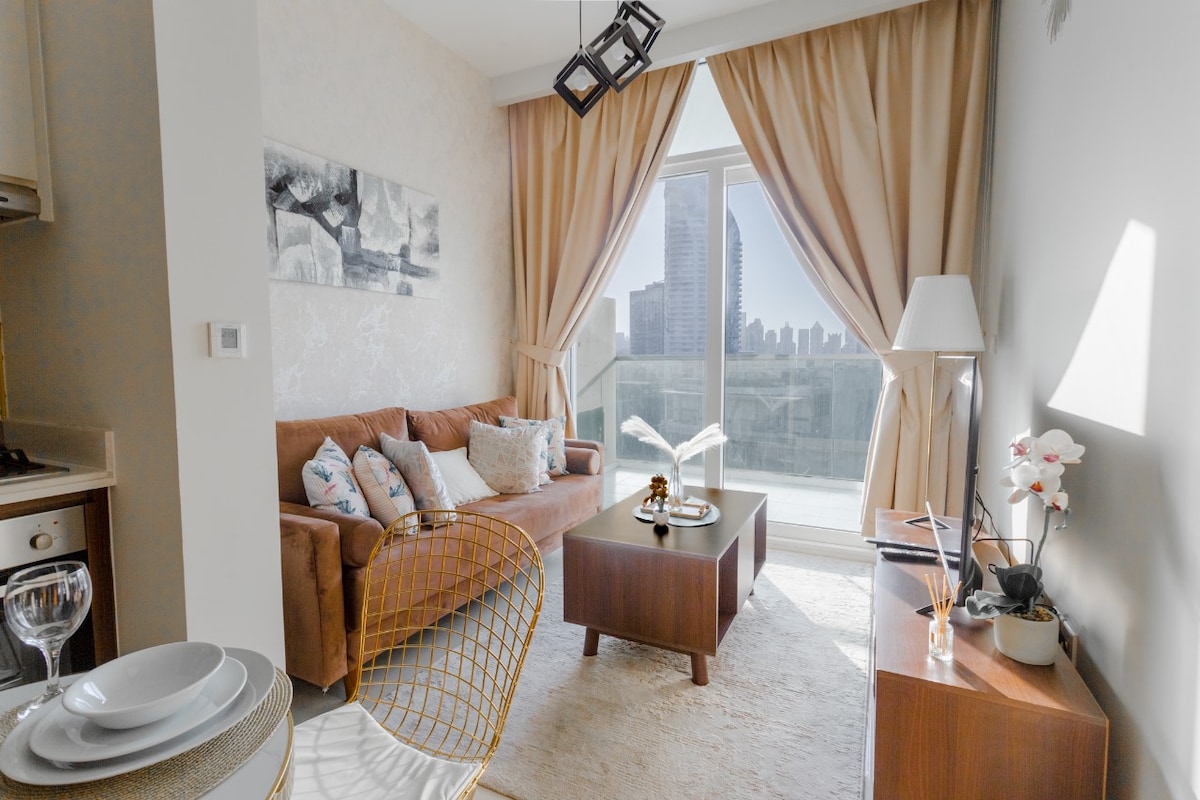 Soft Escape – 1BR di JVC dengan Kolam Renang, Gym & Smart Home