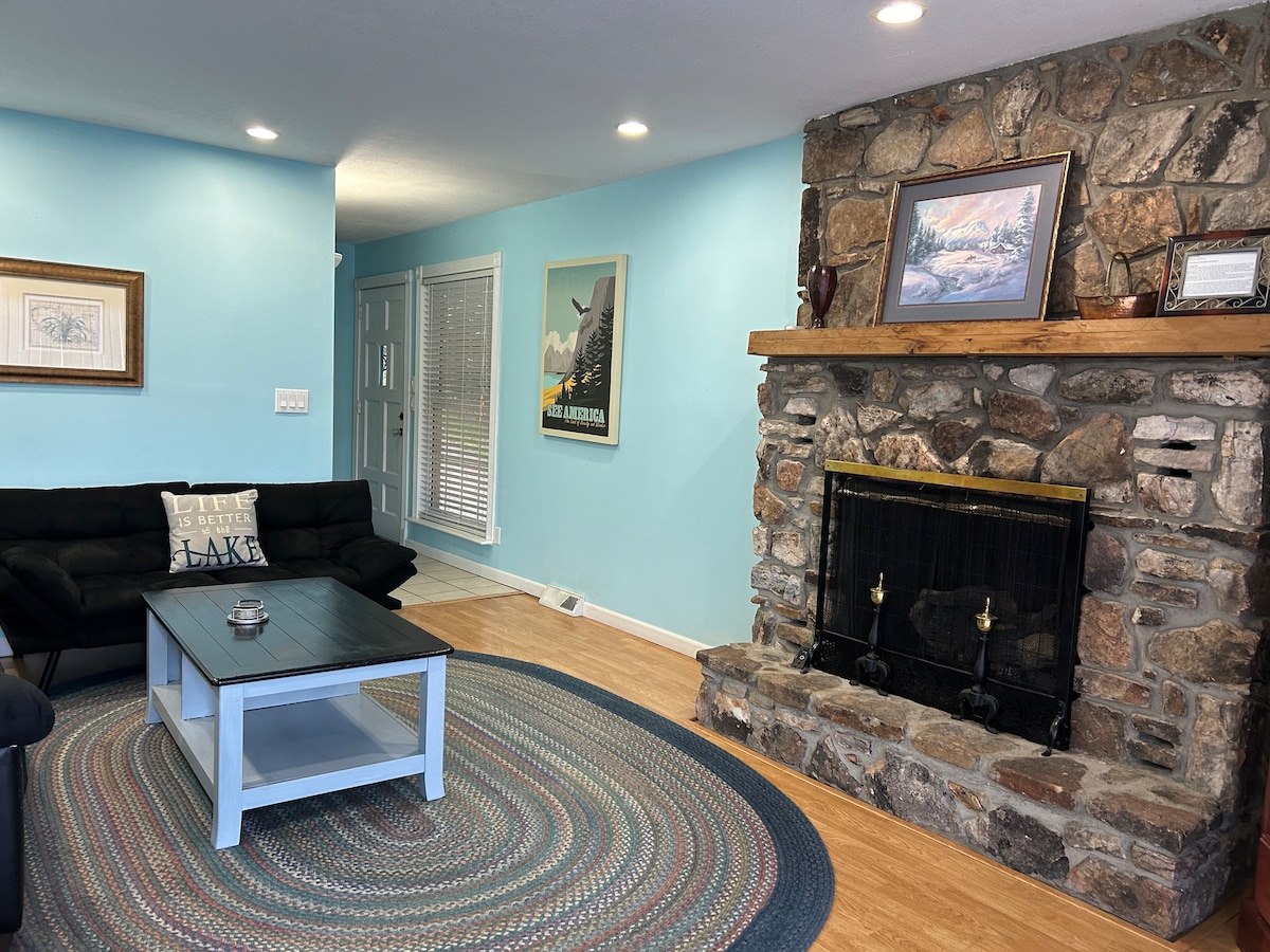 Relax with the whole family at this peaceful lake front home. Three bedrooms, two baths and two living areas can accommodate multiple families. A sleeper sofa in the lower living area can accommodate additional guests and has a lake view and access. This getaway offers clean modern style and comfort. Great views and access to the lake in the back yard. A short walk or drive to shopping, dining or boat rental.