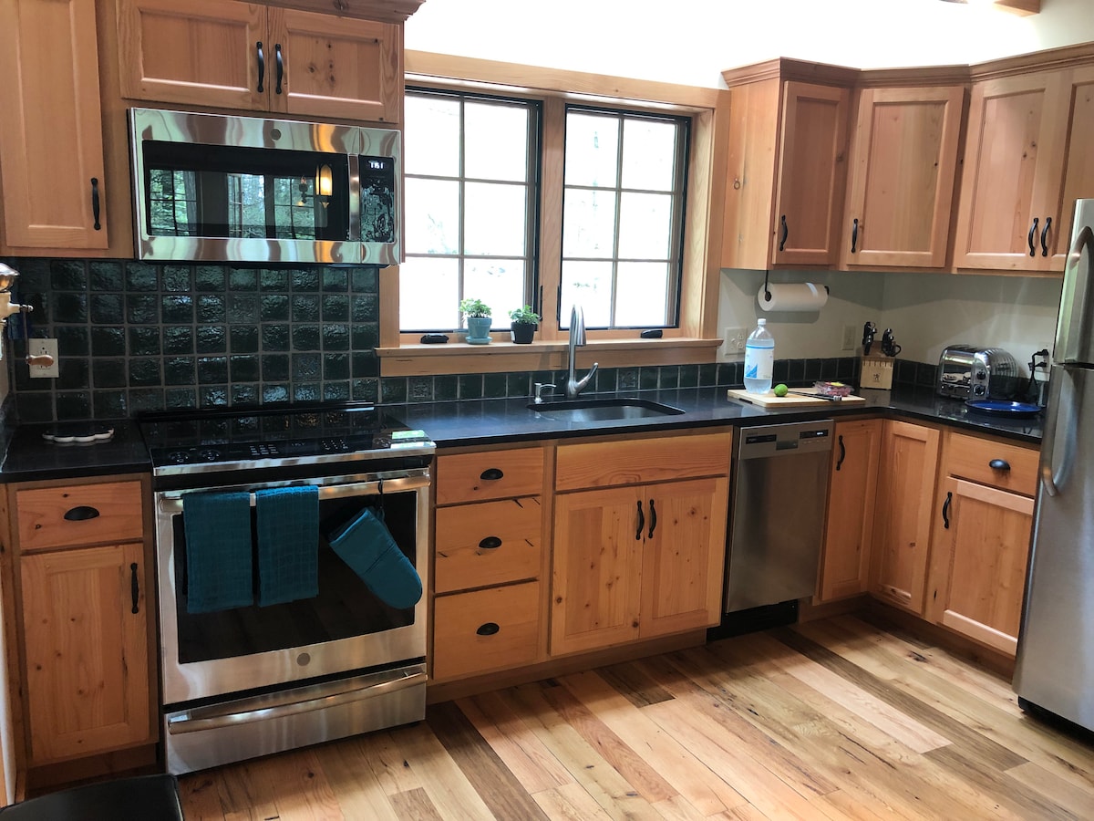 "Benar - benar ajaib" adalah kata - kata tamu pertama ketika dia menemukan tempat peristirahatan menakjubkan ini, penuh kejutan untuk anak - anak dan orang dewasa, hanya menuruni bukit dari Appalachian Trail. Berjalan - jalan di hutan, bersepeda, bermain air di sungai, atau sekadar bersantai di batu di tepi perapian sambil membaca buku bagus. Dengan dua kamar tidur, ceruk tidur yang cerdas, dan futon di Secret Playroom, kabin dapat menampung enam orang, tujuh jika Anda melarang mendengkur Paman Arslan ke sofa.