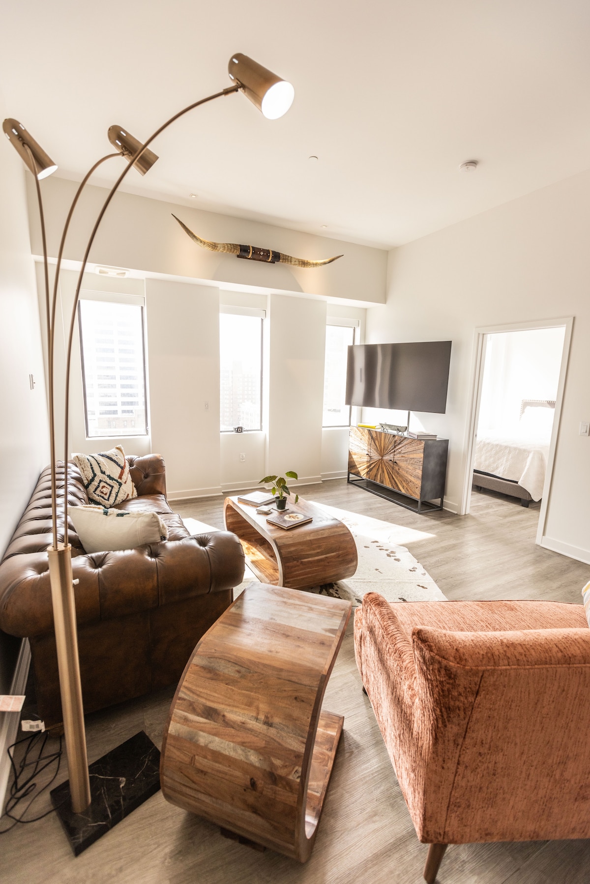 Rasakan kehidupan mewah terbaik di gedung bersejarah kami di jantung Kansas City. Nikmati fasilitas komunitas kami, termasuk fitness center, lapangan basket dalam ruangan, dan ruang yoga dan meditasi. Pasar 24 jam kami akan membuat Anda bersemangat untuk hari Anda, sementara KC Streetcar membuat transportasi menjadi mudah. Bersantai di Sky Lounge & Terrace kami, atau lakukan pekerjaan di pusat bisnis atau ruang kerja dan ruang konferensi kami. Stasiun pengisian mobil listrik juga tersedia di lantai 5.