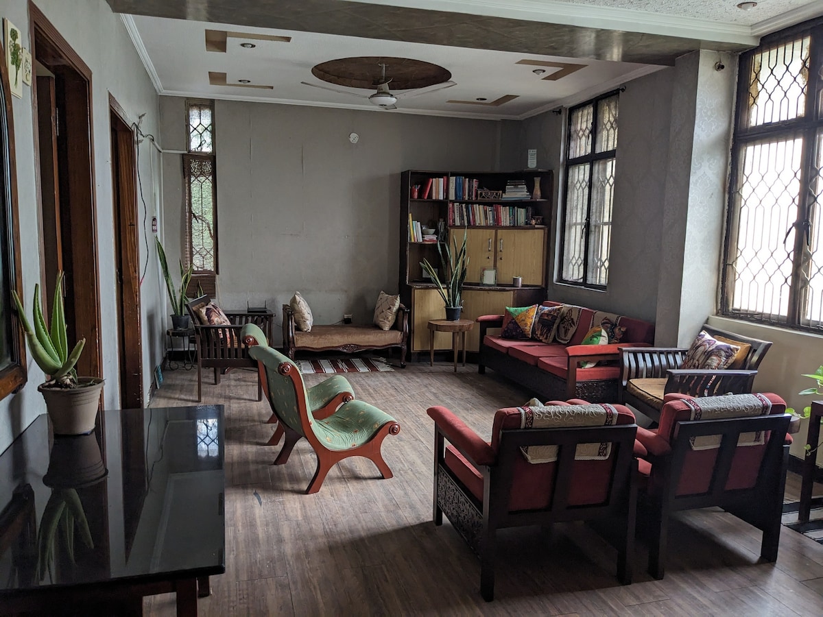 Studio nyaman di lantai 3 dengan pintu masuk pribadi, dapur lengkap, kamar tidur dan kamar mandi yang luas, dan akses langsung ke teras rumah. Terletak di tengah - tengah Blok Karim, Allama Iqbal Town dengan parkir mobil gratis. Ideal untuk wisatawan tunggal atau pasangan. Sangat cocok untuk masa inap yang nyaman dan tenang dengan semua fasilitas penting di dekatnya. Nikmati pagi yang cerah di teras dan bersantai di tempat pribadi Anda yang damai setelah seharian di kota. Harap perhatikan: tidak ada lift, akses hanya melalui tangga.