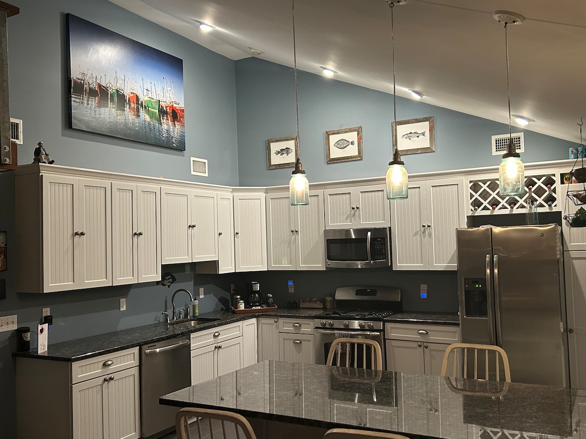 Selamat datang di rumah pantai tepi laut kami! Hanya 2 menit ke teluk terbuka dan 5 mil ke LBI. Berada di daerah yang tenang dan ramah keluarga, rumah kami terkenal akan pemandangan, kebersihan, dan kenyamanannya. Unit AC baru di SETIAP kamar tidur! Sistem AC sentral di seluruh ruangan. Jalan kaki di ujung blok, 2 mil ke pantai teluk, dan 1 mil ke plaza dengan bagel, pizza, pasar, dan perawatan mendesak holistik. Termasuk lubang api dan perahu dayung. Bawa perahu, jetski, atau kayak Anda! Ramah acara—tanyakan kepada kami.