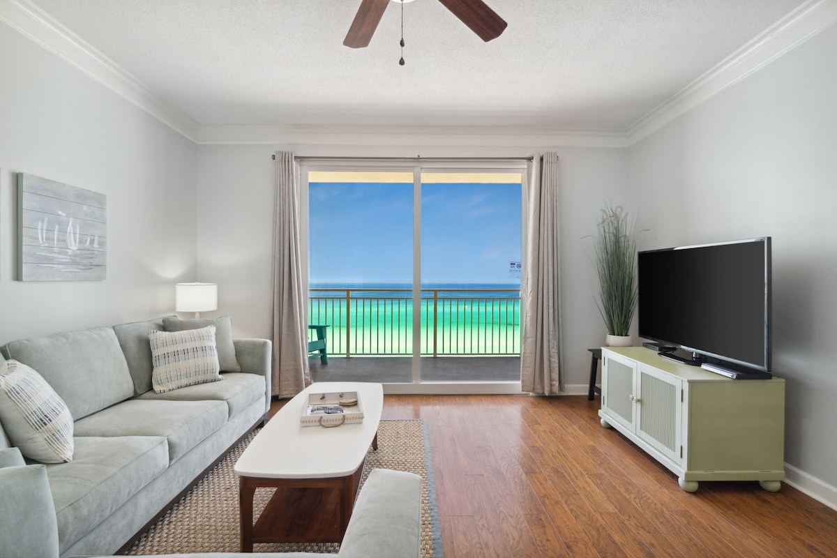 DIRECT BEACH ACCESS - UNOBSTRUCTED GULF VIEWS - FULLY STOCKED - BEACH TOWELS AND CHAIRS PROVIDED - SUPERIOR SERVICE Welcome to “SUNSET VIEW”! This fully upgraded 2 Bed and 2 Bath condo has an amazing direct gulf view from the large private balcony. Large open floor plan & equipped with all of the comforts of home. Once you arrive at “Sunset View” you will be happy to relax with the best view in PCB! You’ll also enjoy direct beach access, resort amenities, and beach chair attendant service.