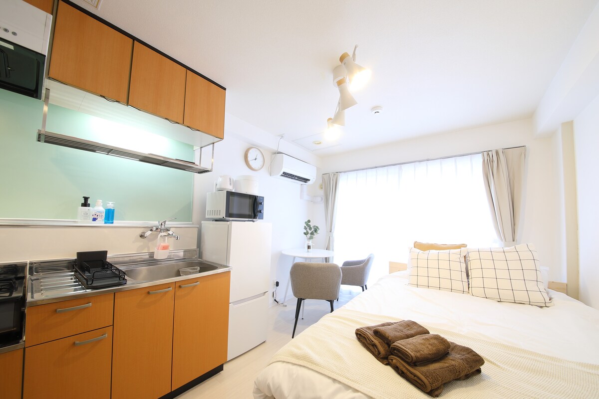 Berdasarkan konsep "tinggal seperti tinggal di apartemen studio ", kami mencoba menciptakan kamar yang sederhana dan bersih. Fasilitas ini adalah kamar yang benar - benar pribadi, sehingga Anda tidak akan bersama tamu lain. Kamar pribadi, dapur, toilet, dan kamar mandi semuanya pribadi. Fasilitas: Handuk muka/handuk mandi ※ Kami menyiapkan satu per orang dewasa. Shampoo/bilas/sabun mandi/pengering rambut/sikat gigi · Kitchen (1 kompor · wastafel )/ Peralatan memasak (penggorengan kecil, pisau dapur, pisau dapur, dll) TV/Microwave/Ketel/Kulkas kecil WiFi gratis. Mesin cuci/pengering (di dalam gedung) ※ Tidak ada pakaian tidur seperti yukata, jadi harap persiapkan pakaian Anda sendiri.