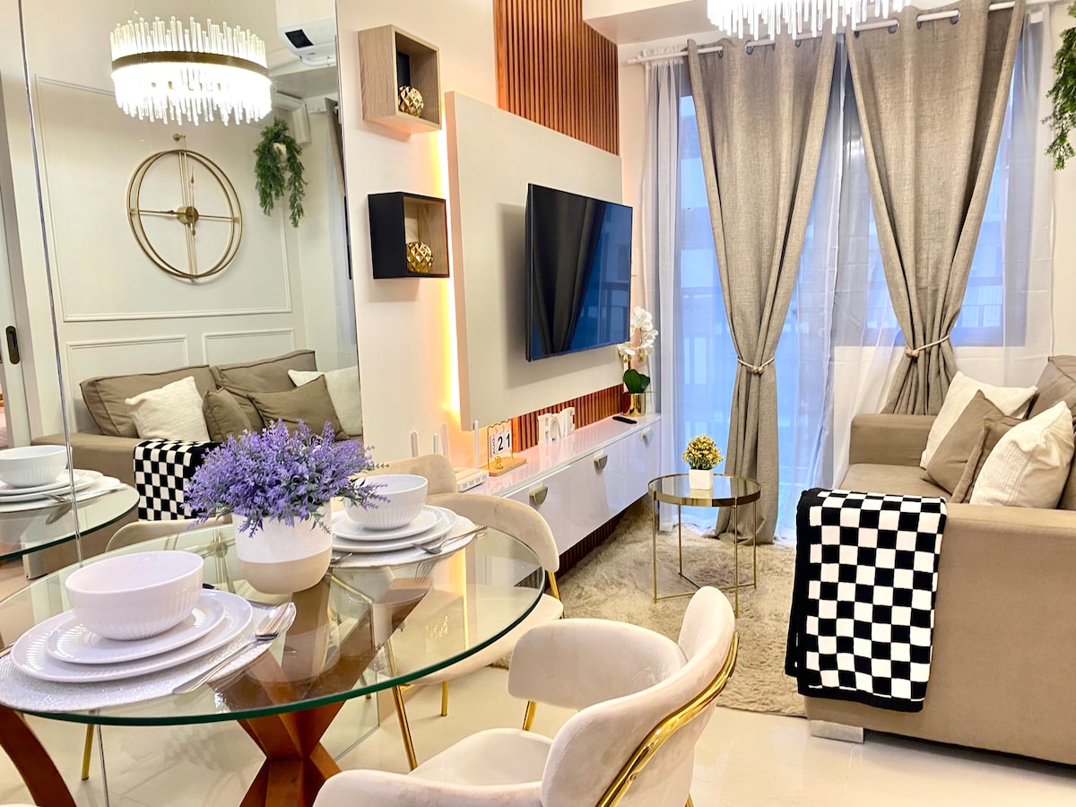 Selamat datang di kondominium bergaya kami di St. Dominique bertema Paris, Megaworld Iloilo! Ideal untuk keluarga, teman & pelawat bisnis. Kamar ekstra 2BR + ringkas ini memiliki tempat tidur king master BR, kamar tamu yang nyaman, dan kamar ketiga kecil dengan tempat tidur single. Nikmati TV 65” dengan Netflix, Wi-Fi 300 Mbps, dapur lengkap, dan mesin cuci. Unit sudut lantai tinggi dengan pemandangan kota & matahari terbenam—jarak berjalan kaki ke Iloilo Convention Center (ICC), Festive Walk & Festive Mall!