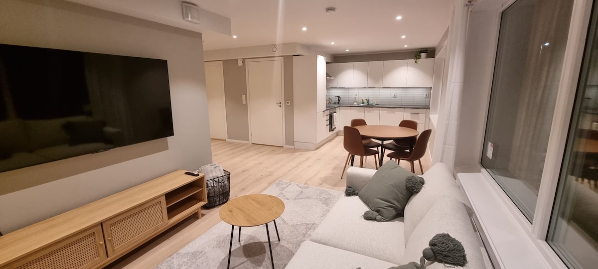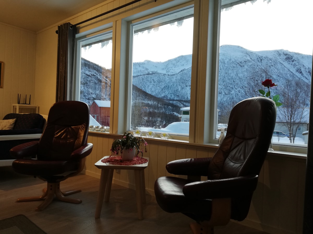 Apartemen modern seluas 40 m2 + 20 m2 teras yang menghadap ke laut, di rorbu di Kaldfarnes di bagian luar Senja. Alam dan pemandangan yang menakjubkan, eldorado untuk penggemar luar ruangan. Apartemen ini memiliki avd dapur. dengan kulkas terintegrasi, mesin cuci piring, kompor, dan peralatan dapur. Kamar mandi dengan bilik pancuran dan mesin cuci, di antaranya. Wifi + Smart TV dengan Canal Digital (satelit). 3 tempat tidur di kamar tidur (tempat tidur keluarga; 150 + 90) + tempat tidur sofa yang luas di ruang tamu. Apartemen yang sangat baik untuk 3 orang namun bisa menginap hingga 5 orang jika diinginkan.