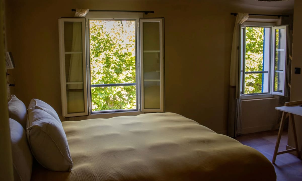Chambre de 12m3 avec deux lits simples, une baignoire d'angle, ainsi qu'un petit dressing et des wc séparés. Nous sommes très exigeants sur la propreté des chambres, nous utilisons uniquement un nettoyeur à vapeur, et produit 100% naturel. Pas de climatisation! Ni wifi et tv. Animaux accepté, merci avant de m'écrire. Local vélos fermé/ parking sécurisé Accès avec environ 10 marches Petit déjeuner 10€/personne Marseille à 30 minutes Aix en Provence 40 minusw