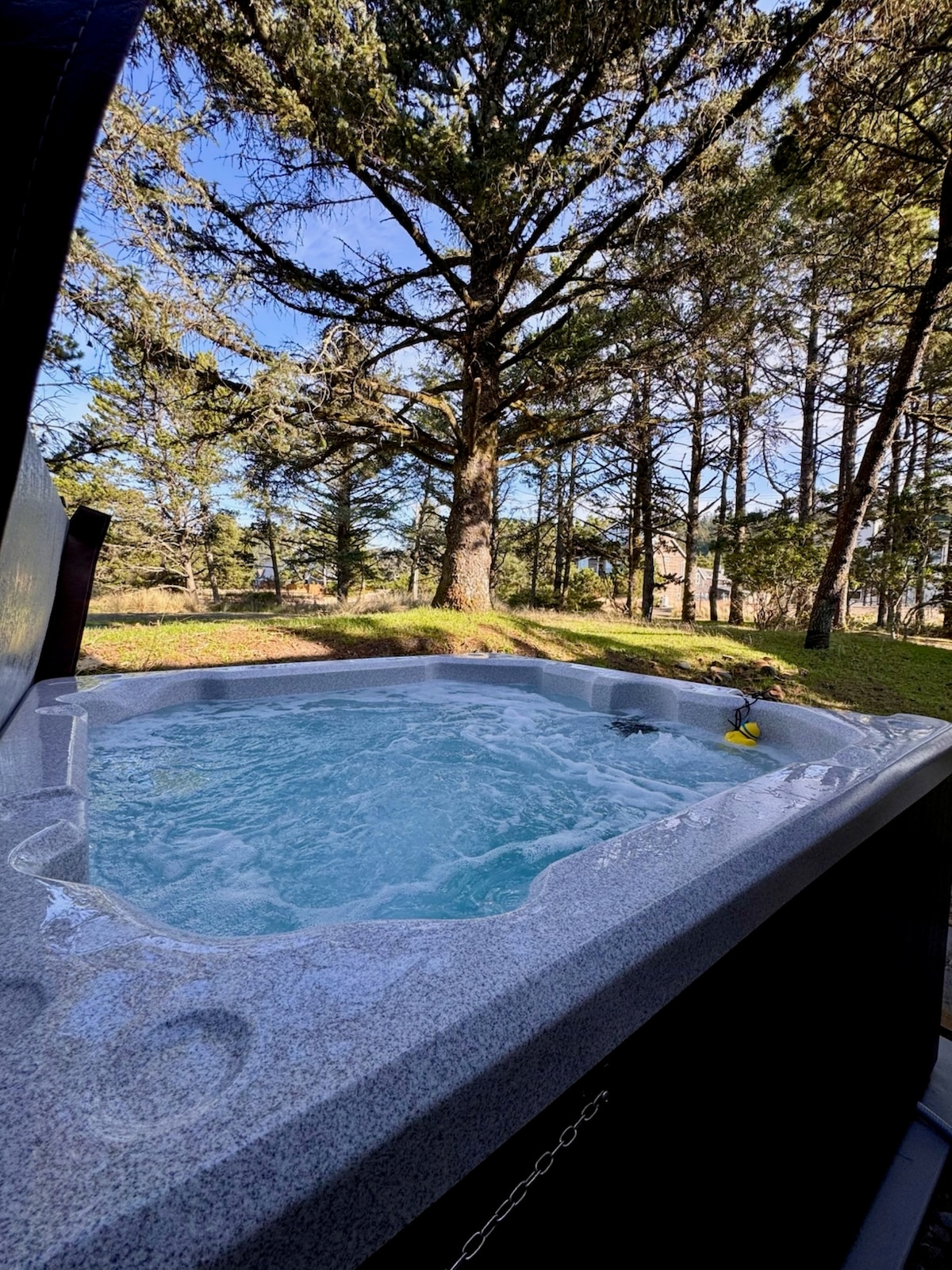 Harbor Haven — Your Coastal Retreat in Depoe Bay Welcome to Harbor Haven, your perfect Oregon Coast getaway in the heart of Depoe Bay — a charming town known for its stunning coastline, famous whale watching, and friendly small-town vibe. This Depoe Bay retreat is just steps from local shops, galleries, restaurants, and some of the best spots to whale watch, explore tide pools, or treasure hunt on the beach. Inside, the home features a bright, open-concept living space with a cozy gas fireplace, an updated kitchen with stainless steel appliances, granite countertops, and plenty of room for cooking, dining, and gathering with family and friends. Outside on your private cement patio you can soak in the hot tub under the stars, dine al fresco, or relax with the cool coastal breeze. Upstairs, three comfortable bedrooms provide restful spaces for everyone. The primary suite features a king bed and private bath, while two additional bedrooms — one with a full bed and one with a queen — share a convenient bath. Harbor Haven offers the perfect balance of peace and convenience — quiet enough to recharge, yet just a short walk to the sights, restaurants, and attractions that make Depoe Bay so special. Spot migrating gray whales from nearby cliffs, stroll along the scenic coast, or take a short drive to Lincoln City or Newport for more coastal adventures. At day’s end, return to your cozy haven — where a warm fire, inviting spaces, and the gentle rhythm of Depoe Bay welcome you home.