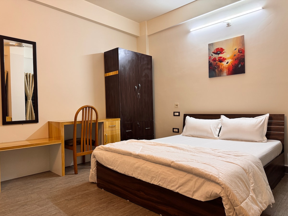 Selamat datang di apartemen 2BHK baru, yang dirancang untuk tamu yang menghargai kenyamanan, kedamaian, dan suasana rumah. Terletak di lingkungan yang strategis namun tenang, ideal untuk keluarga, teman, dan semua. •Interior modern 2BHK yang luas ( AC di 1 kamar) • Apartemen lantai tiga yang menawarkan privasi, pencahayaan, dan ventilasi yang lebih baik • Dapur berperalatan lengkap untuk memasak gaya rumah •Balkon & ruang terbuka dengan banyak cahaya alami dan udara segar • Lingkungan yang aman & higienis • Tempat parkir untuk kenyamanan Anda