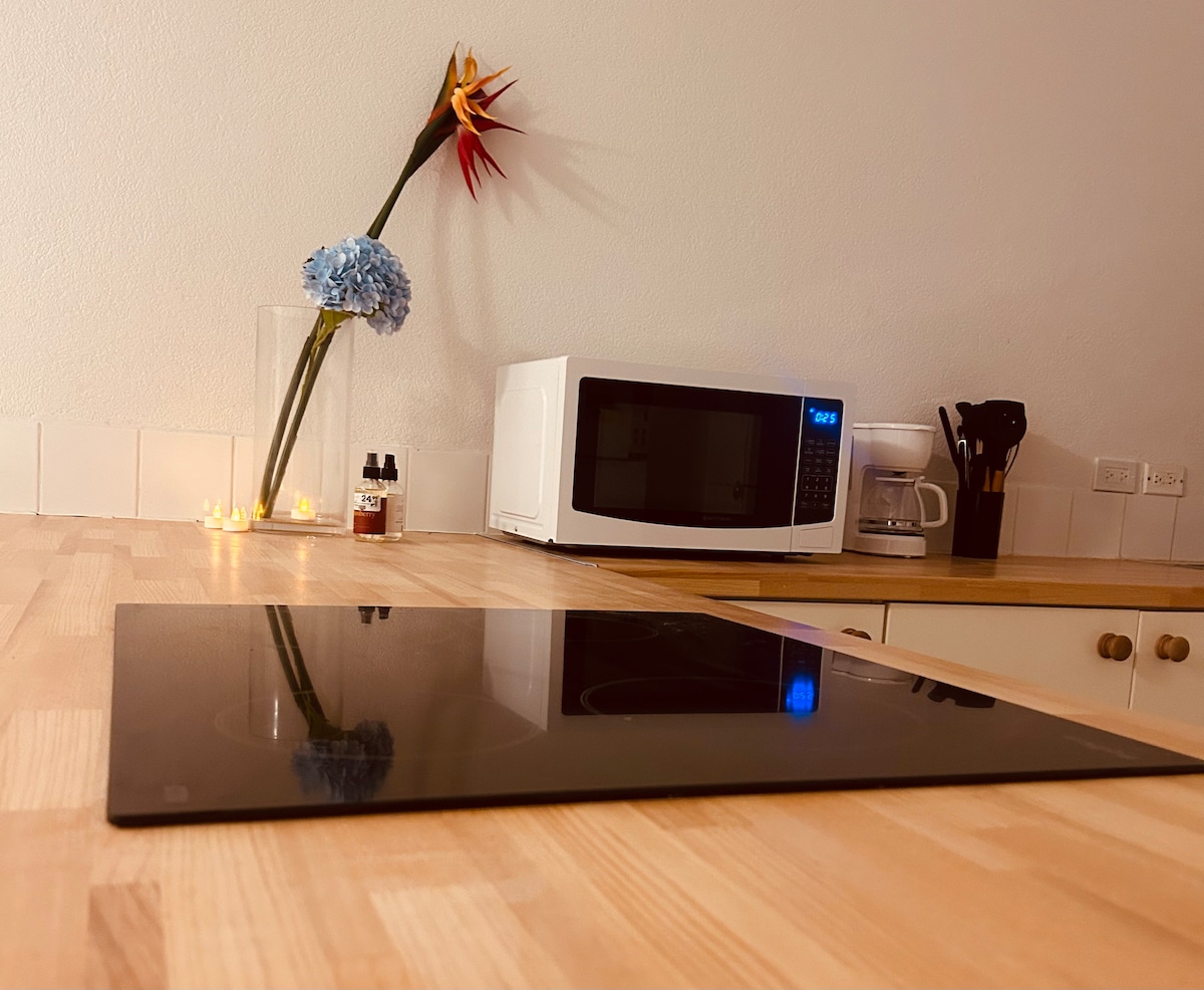 A stylish coastal, private, garden home for water& nature lovers ! 2 bedrooms with A/C a king sized bed in Master the 2nd bedroom can be two single beds for a King Sized. Studio next door with en-suite and kitchen available separately on request. Large marble family bathroom, bright modern kitchen for entertaining, and large covered patio. Oceanfront garden for dining, lounging, and relaxing. Safe storage for boards, kayaks, and kites. Additional outdoor shower, hose, hammock, and BBQ.