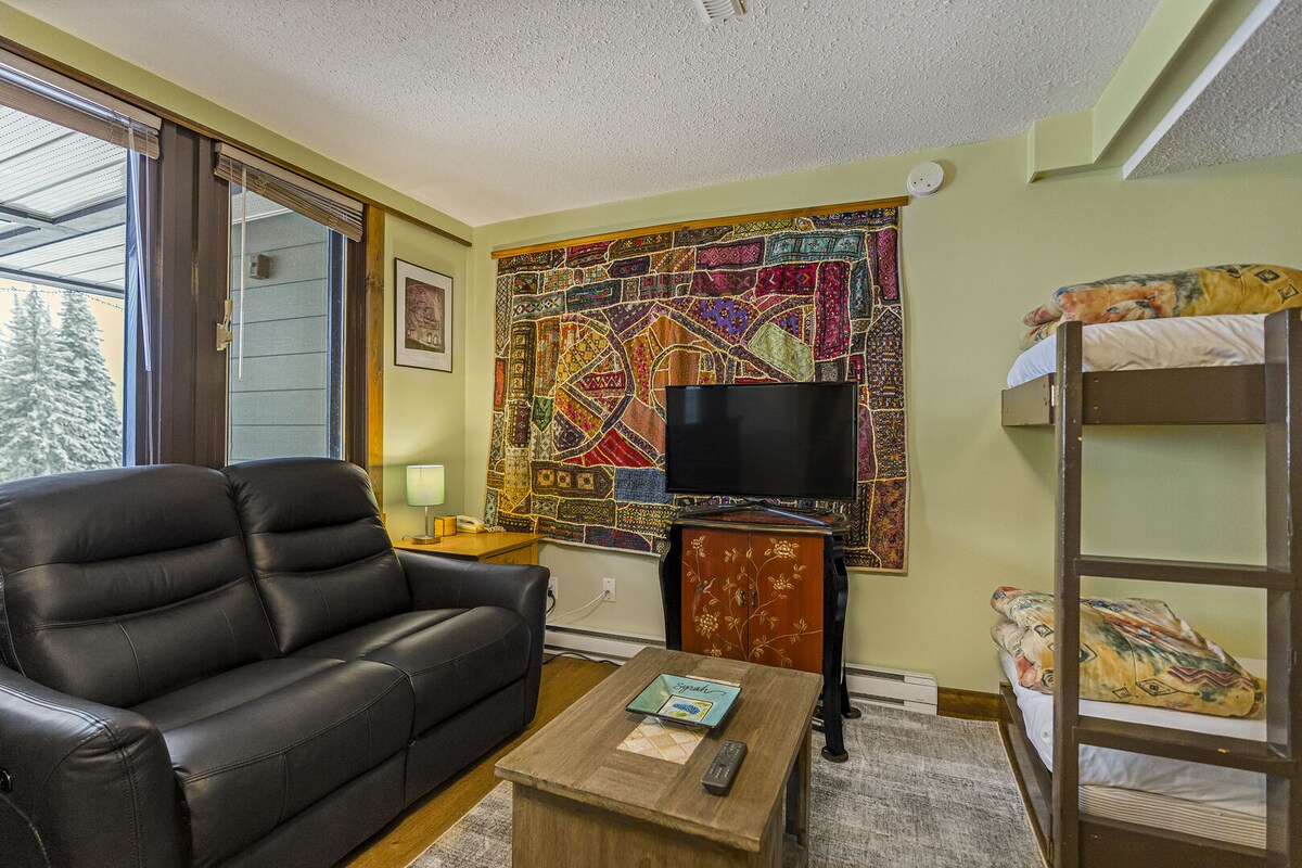 Suite studio yang nyaman ini berlokasi di Creekside tepat di atas Silver Queen Chair ini adalah tempat liburan musim dingin yang sempurna. Semua area yang sering disentuh dibersihkan sebelum kedatangan. Dengan langkah - langkah keselamatan covid resor lebar di tempat studio kami tidur nyenyak 4 dengan tempat tidur Murphy dan sofa. Dapur dengan perlengkapan lengkap sedang menunggu dan perapian gas. Dekat dengan Brewers Pond, Tube Town dan arena bowling apa lagi yang kamu butuhkan ?