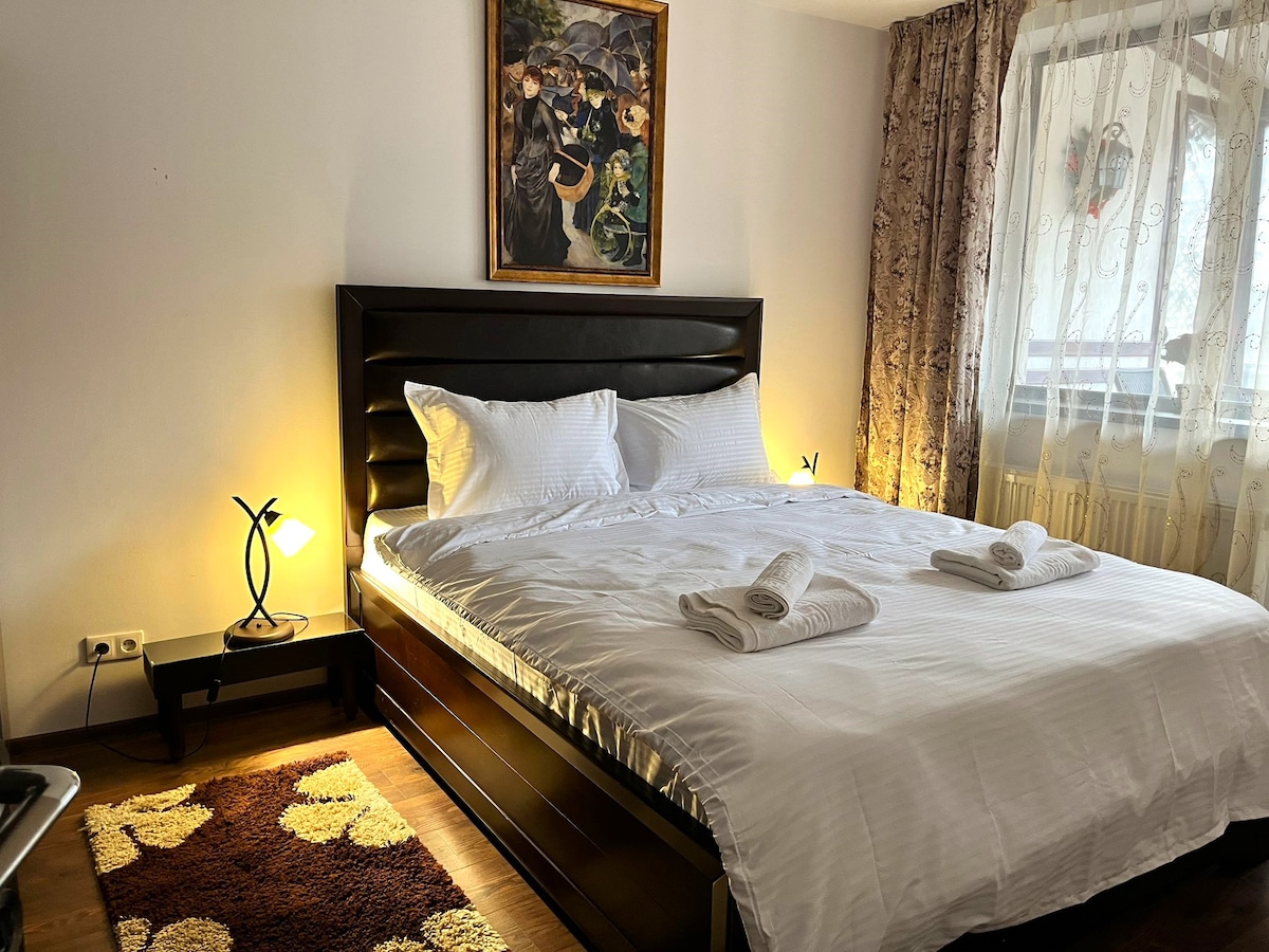 Apartemen Jacuzzi Chic yang romantis berlokasi di kompleks perumahan baru di kota kerajaan Sinaia , menawarkan pemandangan yang luar biasa di atas Pegunungan Bucegi. Apartemen ini, dengan luas 36 meter persegi,memiliki bak mandi air panas ganda yang terletak di samping tempat tidur king size, ideal untuk pasangan romantis yang mencari pengalaman khusus. Tersedia Smart TV berskala besar dengan program kabel ( termasuk untuk orang dewasa ) dan koneksi internet nirkabel.