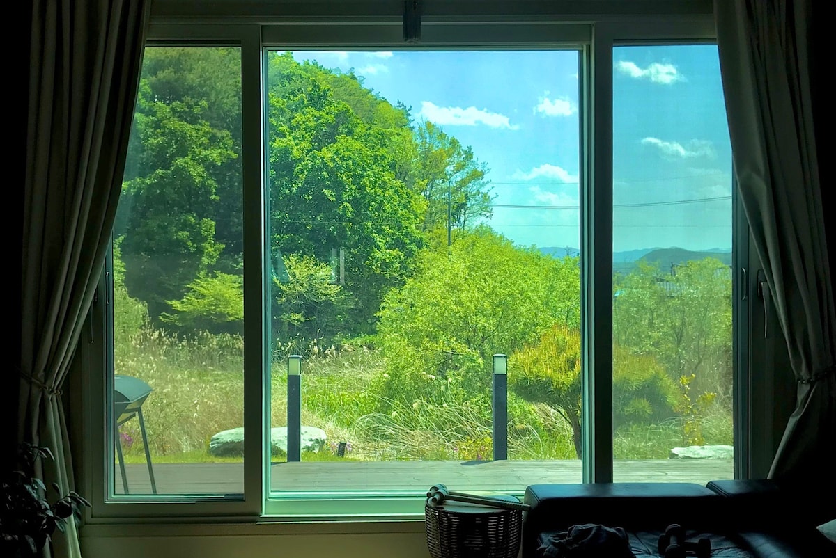 🌿 Tempat pribadi dan eksklusif kami sendiri! Pengalaman Healing N yang menyenangkan akan membuat perjalanan Anda ke Chuncheon semakin menyenangkan. 🌿 Sorotan Pengalaman Penyembuhan Ann!! Anda bisa menikmati taman pribadi, rumah yang indah dan tersendiri dengan tema Little Red Riding Hood, dan dapur luar ruangan yang sempurna untuk memanggang—semua untuk Anda sendiri~ 🌿 Lokasi 5 menit dari IC Chuncheon, jadi 20 menit ke mana saja di Chuncheon tidak masalah! Waktu perjalanan ke tempat-tempat utama 7 menit berjalan kaki ke Gubongsan Observatory Cafe Street; Bendungan Soyanggang / Cheongpyeongsa / Tongnamu Dakgalbi / Ladang Kentang / Sambat Makguksu / Gongjicheon / Chuncheonsairo 248 / Sepeda Rel Kim Yujeong 15 menit Pusat Kota Chuncheon / Gang Dakgalbi Myeong-dong 20 menit Legoland/Keretakan Gantung Samaksan 25 menit Elysian Gangchon Resort / Pulau Nami / Festival Hwacheon Sancheoneoreo 35 menit 🌿 Direkomendasikan untuk jenis wisatawan berikut Sangat cocok untuk mereka yang mencari tempat yang lebih bersih daripada tempat lain, yang ingin menginap di rumah yang indah seperti di dongeng, yang ingin berjalan-jalan di tempat yang ramah alam bersama anjing kesayangan mereka, atau yang membutuhkan istirahat yang menenangkan di lingkungan yang tenang! ※ Sangat direkomendasikan untuk perjalanan keluarga bersama pasangan, teman, anak, atau orang tua Anda.