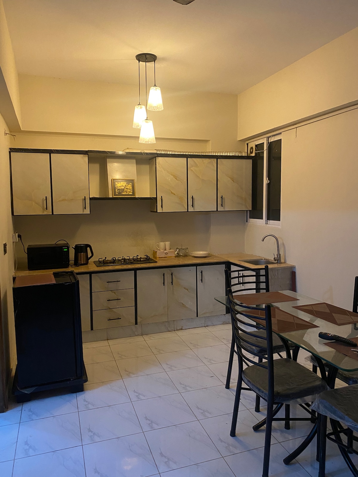 Selamat datang di Furnished Apartment, tempat perjalanan Anda. dimulai hanya 10 menit dari bandara Internasional Jinnah yang ramai. Rasakan akses kota yang mulus, bersantap di depan pintu, dan penjelajahan mudah dengan pengawasan militer 24/7 di dekatnya dan taksi pribadi di Karachi. Kemudahan Anda, komitmen kami. Pesan sekarang untuk pengalaman menginap yang luar biasa, dan biarkan kami menjadi bagian dari Karachi Anda yang tak terlupakan petualangan. Selamat datang di surga di mana kenyamanan bertemu ketenangan