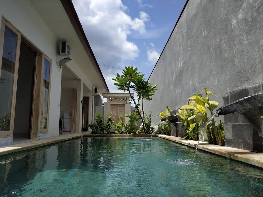 Selamat datang di surga kecilmu di Lovina, Bali! Villa ini seperti hidden gem para traveler top di Airbnb—nyaman dan estetik. Kamar tidurnya ber-AC, dengan kasur empuk dan desain minimalis modern. Kamar mandinya tertutup, didesain dengan dinding bata merah eksotis, wastafel batu alam, dan shower air hangat. Dapur dan ruang tamu semi-outdoor langsung menghadap kolam renang pribadi. Lokasi strategis, dekat pantai dan tempat hits. Ideal untuk honeymoon atau staycation.