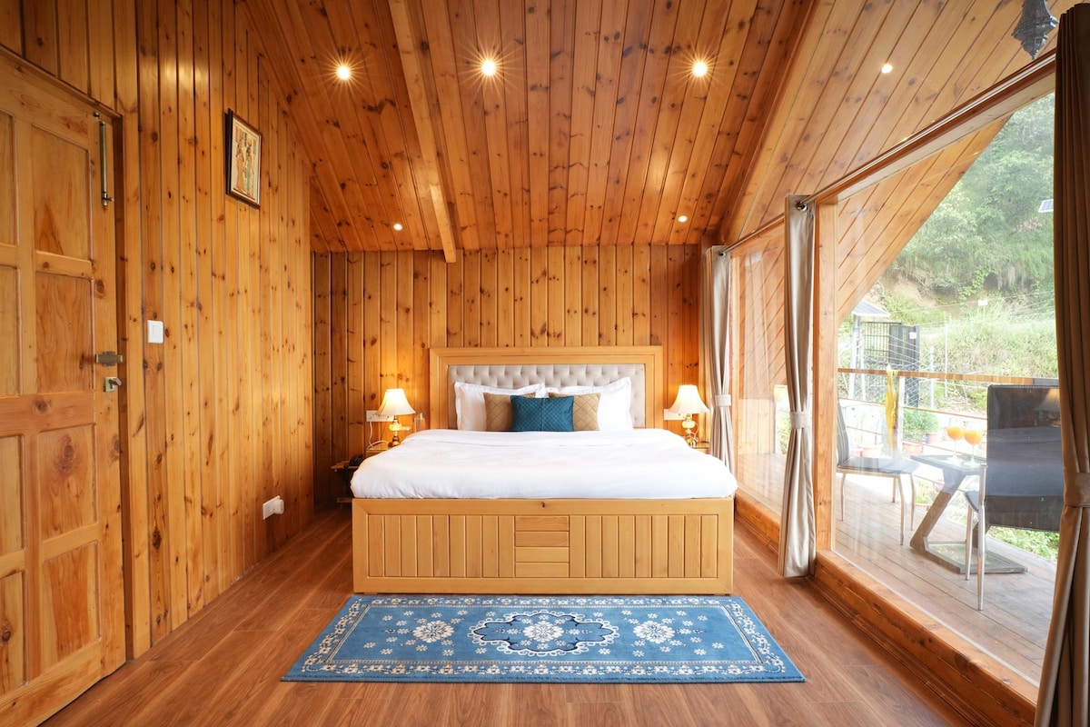 Fitur menonjol vila Kayu A - frame bergaya Eropa ini adalah kolam renang air panas dengan pemandangan lembah Dagshai dan Kasauli 270 derajat dalam satu bingkai. Menampilkan pintu masuk pribadi, vila ini terdiri dari 1 ruang tamu, 3 kamar tidur, teras terbuka dan 2 kamar mandi dengan pancuran dan bak mandi. Menawarkan teras dengan pemandangan taman, vila ini juga menyediakan dinding kedap suara dan terkontrol suhu. Unit ini menawarkan 3 tempat tidur king size, 1 sofa cum bed, perlengkapan tempat tidur ekstra opsional, dan 1 tempat tidur susun gratis untuk anak - anak.