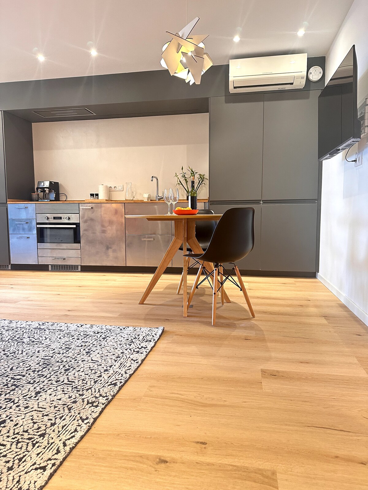 Start the day around the sleek, wooden dining table, then take a newspaper up to the sun-drenched rooftop terrace at this premium, colorful apartment. Cool things down with a refreshing shower in the polished concrete bathroom. More details? High-end Siemens appliances, professional grade internet, Bose speakers, large beds with 300 thread count linens & pillow selection, large wardrobes, safety box, washer, dryer & bike room.