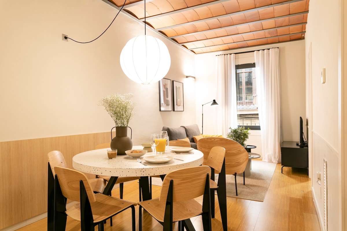 Apartemen satu kamar tidur dan satu kamar mandi bergaya di area Sant Antoni yang sangat sentral, ideal untuk hingga empat orang. Kamar tidur memiliki tempat tidur double dan ada tempat tidur sofa double di ruang tamu yang bisa menampung tambahan dua orang lagi. Ini menggabungkan lantai parket & dekorasi modern dan penuh dengan cahaya alami. Apartemen ini memiliki ruang makan dengan meja besar, yang terletak di dekat dapur.