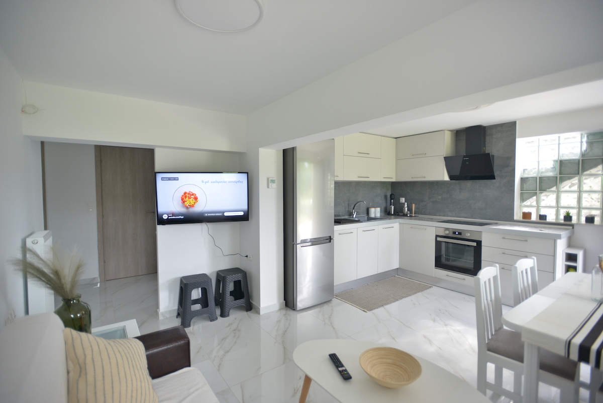Tempat menginap yang elegan dan nyaman ini sangat ideal untuk liburan musim panas, hanya dua langkah dari laut, menghadap pantai berpasir di Pantai Kalamitsi dengan pulau kecil yang khas. Akomodasi ini memiliki 2 kamar tidur dengan tempat tidur double dan 2 tempat tidur single. Ruang tamu-dapur yang luas dan modern dan balkon dengan pemandangan laut serta tempat parkir pribadi. Pantai memiliki pilihan restoran, supermarket, olahraga air, dan sekolah menyelam dalam jarak berjalan kaki.
