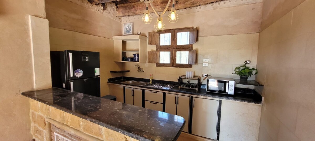 Mencari tempat peristirahatan yang tenang di Siwa? Selamat datang di permata gurun tersembunyi Anda yang terletak di antara pepohonan palem. Hari - hari gurun yang hangat dan malam yang sejuk sangat seimbang di sini dengan kolam renang berbentuk Siwan yang dirancang khusus untuk berendam di siang hari dan perapian yang nyaman untuk malam hari. Anda bisa menikmati pengamatan bintang dan pemandangan hutan kurma dari dek atap kami yang luas. Untuk pengalaman kuliner yang unik, koki rumah kami bisa menyiapkan dan mengantarkan makanan Siwan yang lezat tepat di depan pintu Anda. Rangkul alam dan bersantai bersama kami!