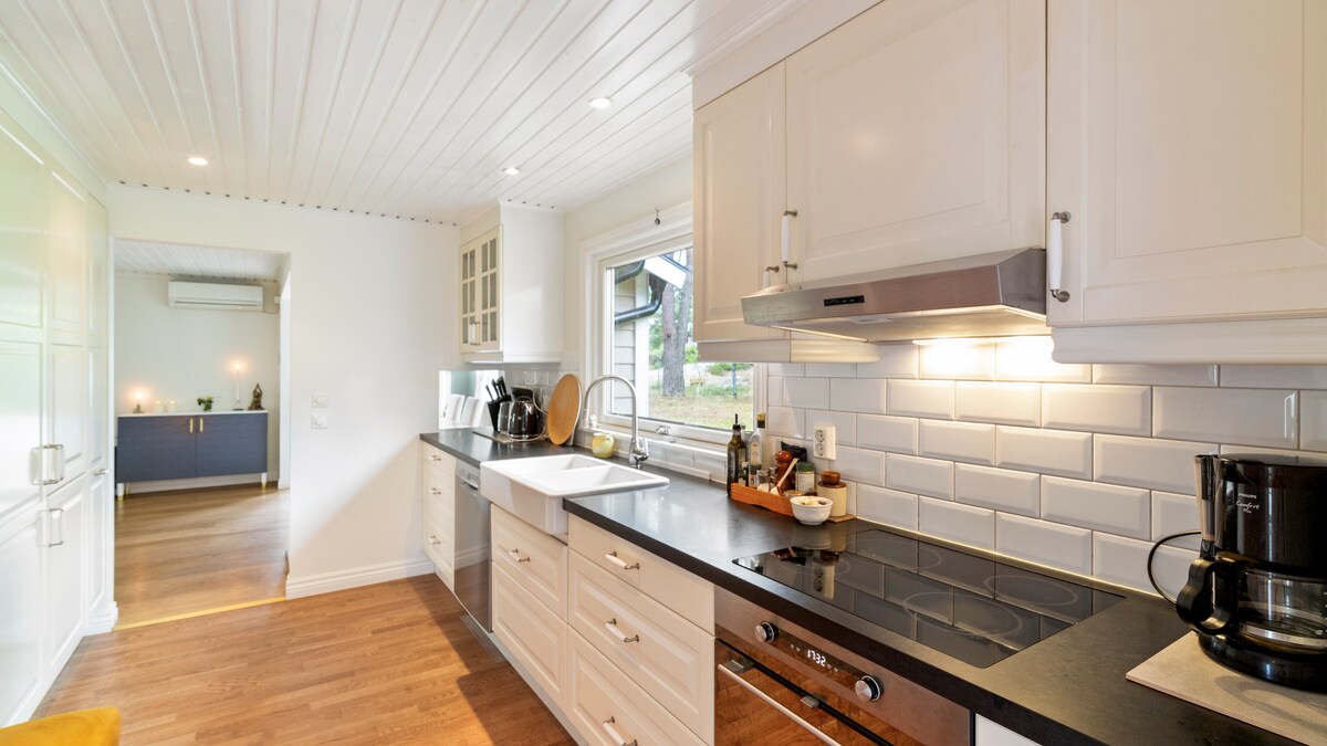 Rumah di tepi laut di dermaga👍Nikmati bak mandi air panas dan sauna kayu bakar. Lingkungan luar ruangan yang fantastis. Rumah modern dan berfasilitas lengkap, didekorasi dengan penuh citarasa. Pengalaman yang sempurna bagi mereka yang ingin menikmati waktu yang santai dan indah di atas air🌞 Jika Anda ingin aktif: kano, mendaki di taman nasional terdekat, berlari atau berperahu. Semua ini hanya 30 menit dari Stockholm! Bayangkan menghabiskan beberapa hari atau minggu di lingkungan ini 😀 - Semua tempat tersedia secara pribadi untuk Anda sebagai tamu.