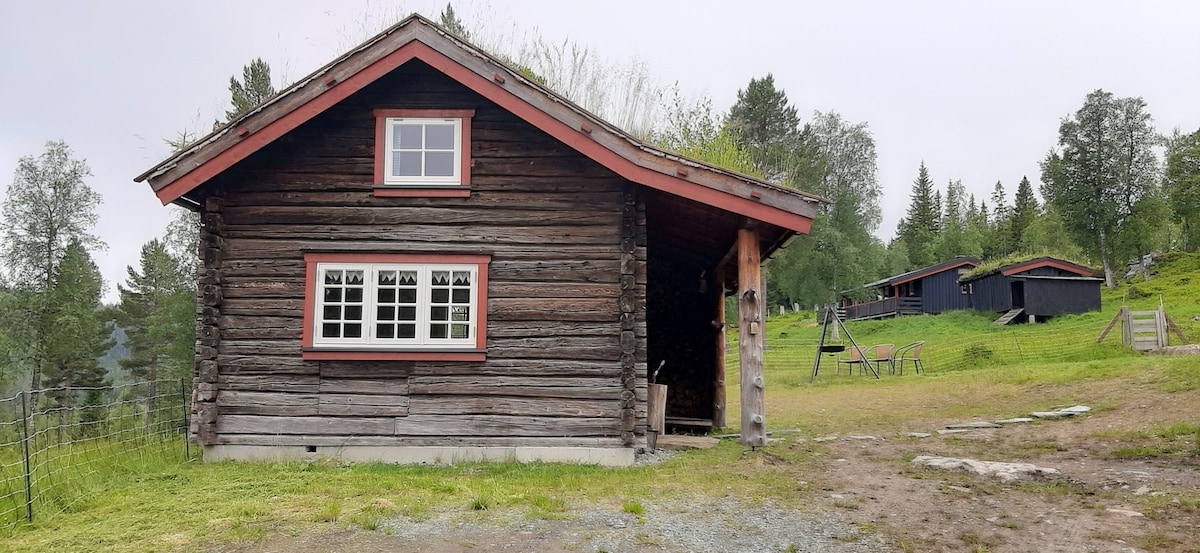 Idyllisk tømmerbu på sætervoll