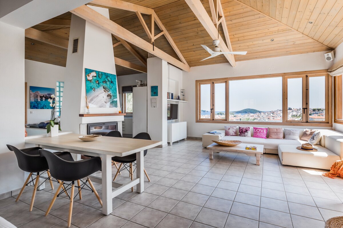 Vila 2 lantai modern & berdekorasi minimalis dengan adanya kolam renang pribadi. Terletak di dekat kota Skiathos (sekitar 5 menit berkendara ke pelabuhan (1,5 km) & 5 menit berjalan kaki (500 meter) ke puncak Papadiamantis str. Pemandangan laut, pelabuhan, dan kota yang menakjubkan. Terletak di lantai 1 terdapat ruang tamu, wc, dapur & kolam renang dengan area balkon besar. Di lantai dasar terdapat dua kamar tidur utama yang luas dengan kamar mandi en - suit & beranda. Vila ini dikelilingi taman yang indah dan kebun zaitun di sekitarnya.