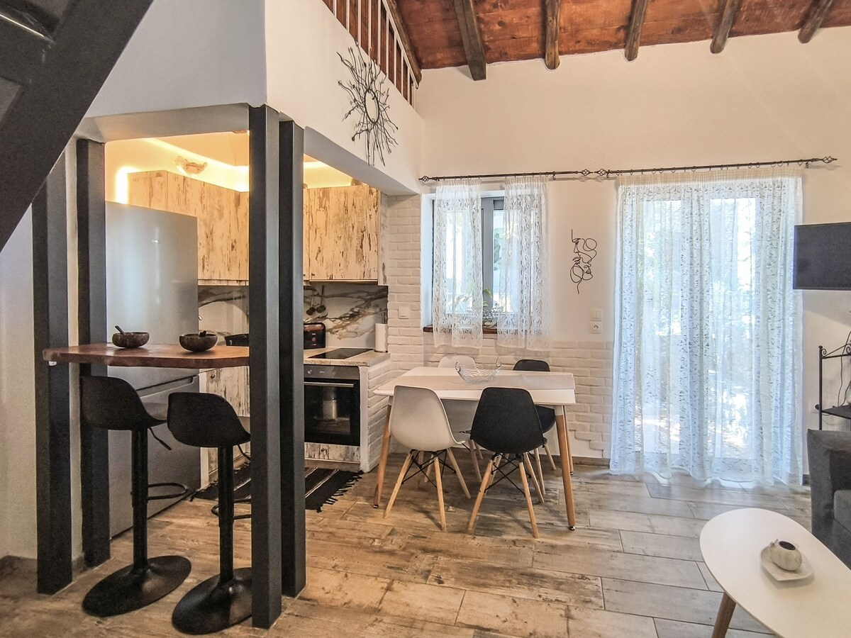 Rumah desa yang direnovasi dengan penuh gaya, berada di pusat Skopelos Town. Properti yang cerah dan luas ini menawarkan teras atap dengan pemandangan desa, gunung Palouki, pelabuhan, dan pulau Alonnissos. Rumah ini terletak di antara gang - gang ramai yang penuh dengan toko, kafe, bar, toko roti, dan restoran. Pelabuhan dengan tavern, kafe, dan kehidupan malam yang meriah, namun tenang, hanya sepelemparan batu.