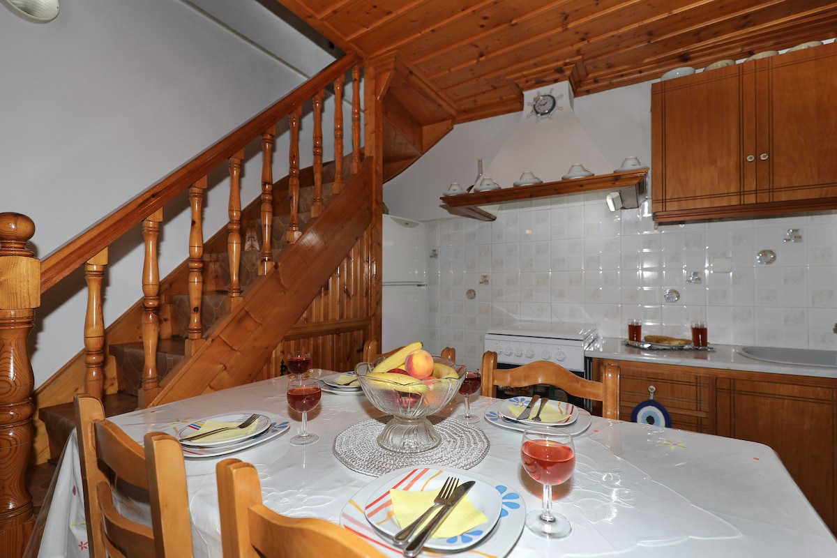 Rumah yang indah ini, menampilkan balok kayu tinggi yang terletak di desa Troulos di pulau Skiathos. Dikelilingi oleh alam (hutan), rumah ini menciptakan tempat peristirahatan yang sempurna untuk liburan musim panas yang tenang dan santai. Pantainya berjarak 1,2 km. Tamu dapat berjalan - jalan di alam dan menemukan semua fasilitas yang mereka butuhkan seperti pasar swalayan, restoran, pom bensin, ATM, dan olahraga air dengan di desa Troulos.