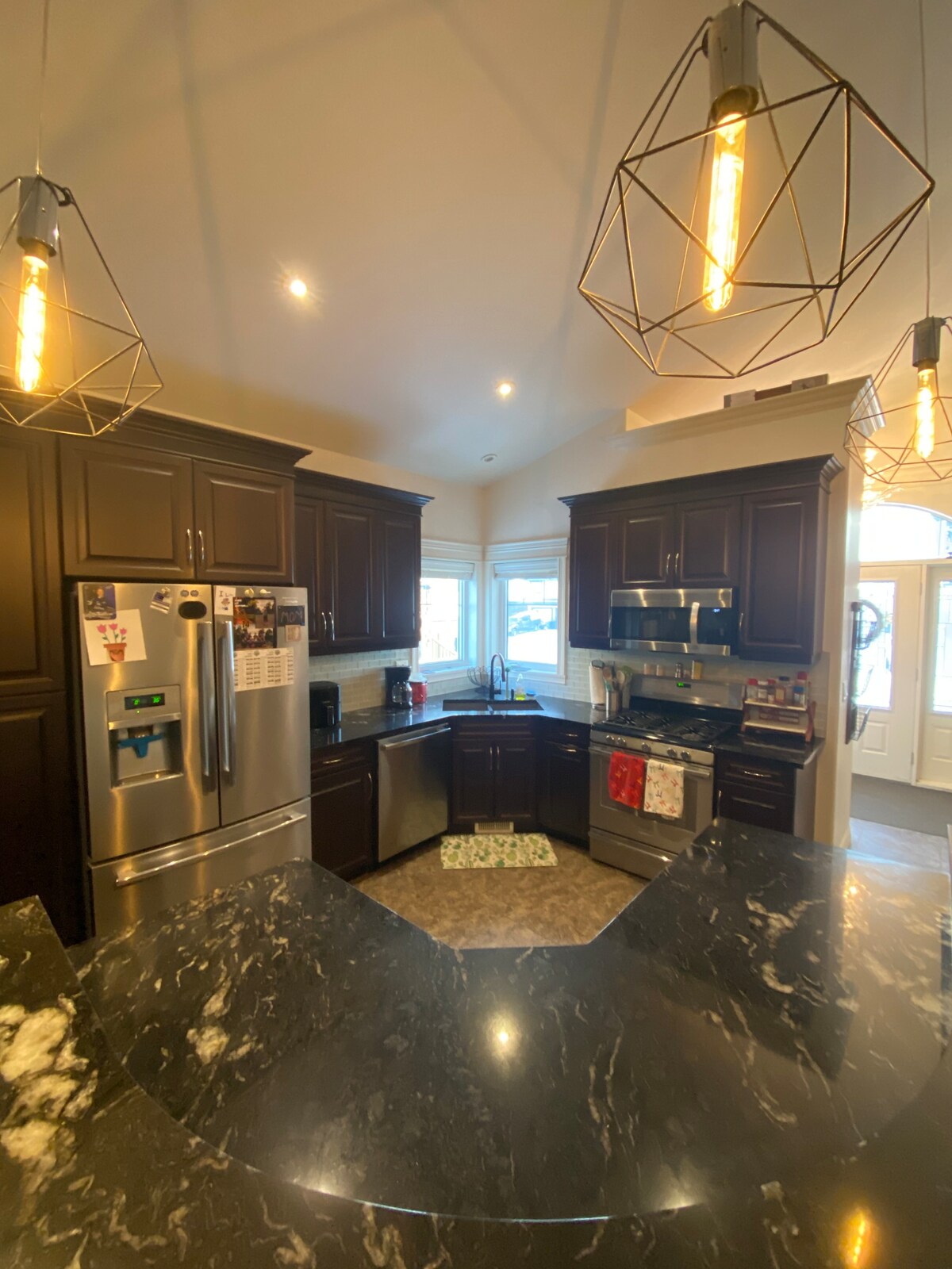 This stylish place to stay is perfect for a cozy home-like feel while working away. The upstairs features 1 master bedroom with king bed and en suite, and a second bedroom with a queen size bed. Kitchen has dishes/cutlery, pots, pans, blender, microwave, fridge, kitchen table, cozy living room with gas fireplace. satellite, netflix, disney+, nhl package. There is laundry in the basement has 2 bedrooms with queen size beds, living room , bathroom and laundry