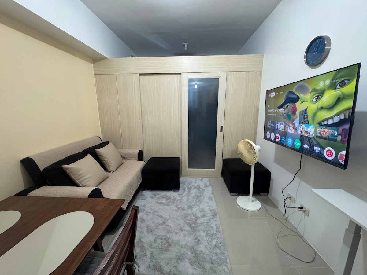 Tempat istimewa ini berdekatan dengan segalanya, sehingga mudah untuk merencanakan kunjungan Anda. Aktivitas Akses🏝️ Kolam Renang (PHP 150/kepala pada hari biasa dan PHP 300 untuk Liburan) 🎲 Permainan papan dan kartu 🎬 Netflix 📺 Youtube Mic 🎤 Bluetooth untuk karaoke Nyaman dan santai! Segarkan pikiran Anda, Bersantai! ❤️ Restoran, supermarket, salon hanya terletak di lantai dasar. Catatan: Untuk keperluan registrasi, diperlukan salinan identitas dan Kartu Vaksinasi. Terima kasih