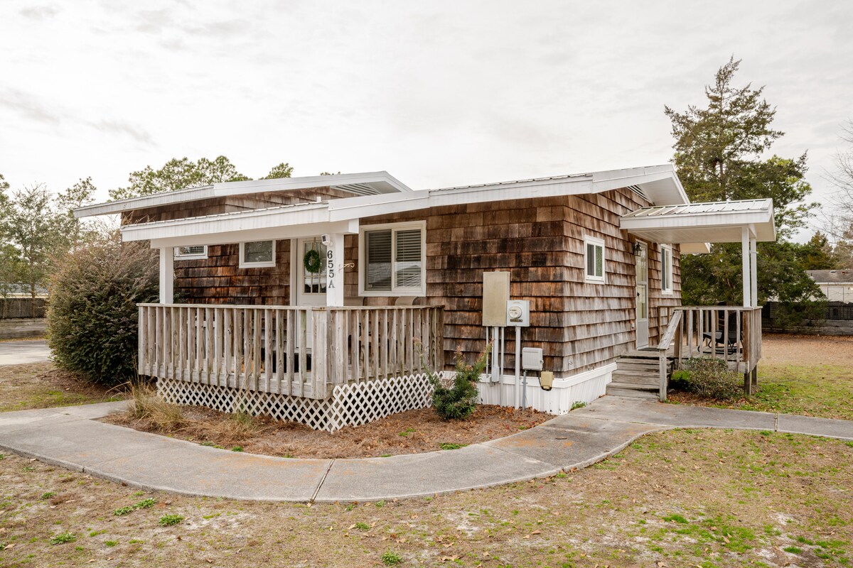 Tempat unik ini memiliki gayanya sendiri! Dan ini semua untuk Anda sendiri!!! Nikmati tempat tenang di dekat Gerbang utama Camp Lejeuene dan Emerald Isle! Disiapkan sepenuhnya untuk mengakomodasi perjalanan singkat atau masa inap yang lebih lama. 2 kamar tidur berkelas, 1 kamar mandi lengkap dan dapur lengkap. Banyak tempat parkir off street jika diperlukan. Perabotan lengkap dengan seprai dan handuk, Wi - Fi berkecepatan tinggi, & smart tv ada di setiap kamar. Begitu banyak fasilitas untuk mengakomodasi masa inap Anda agar lebih menyenangkan!