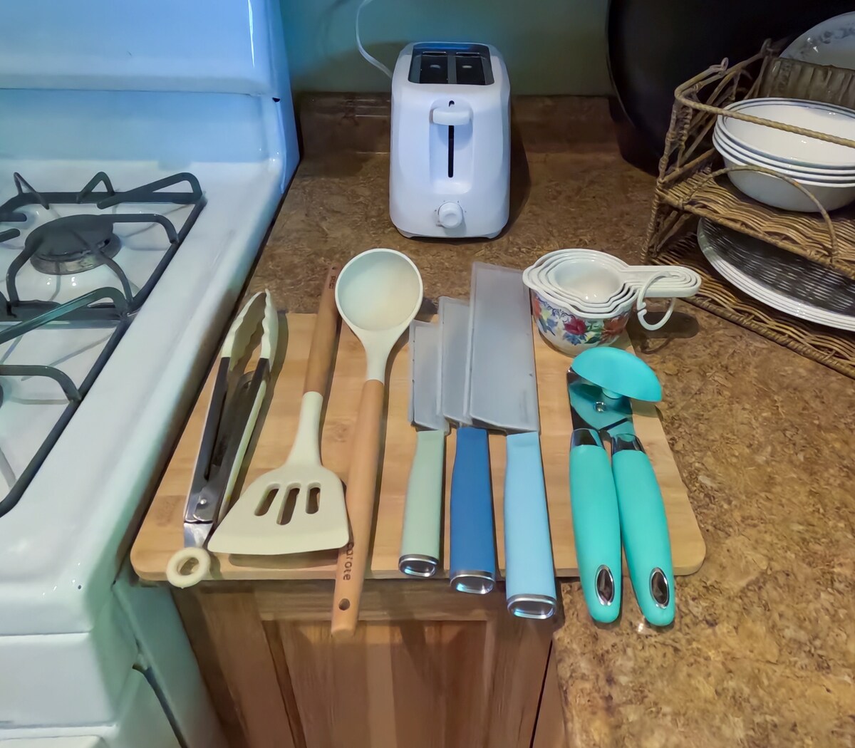 Dekorasi bertema pantai dengan halaman belakang yang luas dan pemandangan hutan belantara. Dua kamar tidur dan ruang masuk depan memiliki futon untuk tamu ekstra. Satu kamar mandi dengan bak mandi dan shower. TV di ruang keluarga dengan TV Piring dan pemutar DVD dengan koleksi film. Dapur lengkap dengan peralatan masak, piring, dan beberapa bahan pokok. Perlengkapan kopi dan teh. Ruang laundry. Dek baru yang luas dengan furnitur dan hammock. Halaman besar dan perapian. Pemandangan pegunungan Kenai, di Crooked Creek. Memancing di halaman belakang, beberapa menit dari pantai.