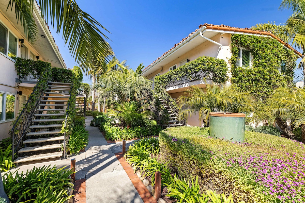 Tersembunyi di halaman tropis hanya beberapa langkah dari pantai, apartemen satu kamar tidur yang telah direnovasi sepenuhnya ini lengkap dengan dapur lengkap dan ruang tamu memiliki semua yang Anda butuhkan untuk liburan Santa Barbara Anda berikutnya. Tidurlah dengan nyenyak di kasur king Casper dengan seprai berkualitas hotel. Bersantai di sofa sectional menonton TV layar datar 50"atau memasak di dapur lengkap. Produk kamar mandi dari Barang Umum. Lokasi pusat memberikan akses mudah ke semua yang ditawarkan SB. Ramah hewan peliharaan!