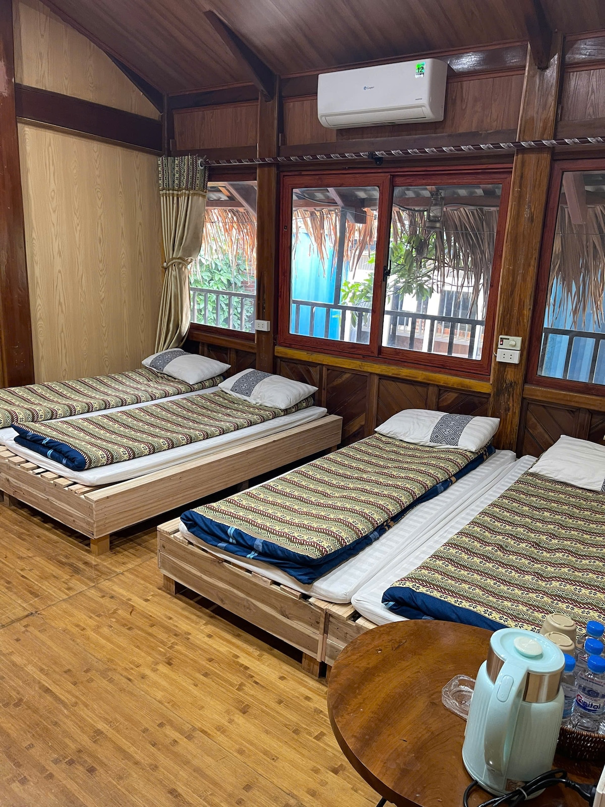 Anda akan menginap di bungalow pribadi bambu unik yang dibangun dengan arsitektur tradisional kelompok etnis di provinsi pegunungan Utara Vietnam. Semua kamar kami memiliki dekorasi alami yang penting, dan dirancang agar luas dan nyaman dengan AC lengkap (baik untuk pendinginan atau pemanasan), kamar mandi pribadi, air panas, dan perlengkapan mandi gratis. Bungalo ini memiliki teras kecil dengan tempat tidur gantung, bantal, dan meja untuk menikmati secangkir teh atau bermain game dengan segala kondisi cuaca
