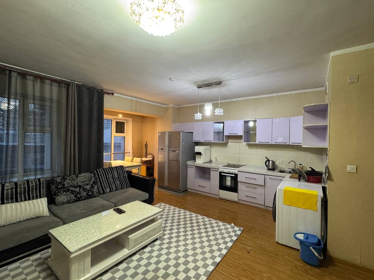Apartemen 3 kamar tidur baru yang lengkap dengan semua perangkat listrik yang diperlukan. Jaraknya 30 menit ke bandara dan 20 menit ke pusat kota. Apartemen ini baru dan benar - benar lengkap untuk kenyamanan Anda - dengan 6 tempat tidur single dan 1 tempat tidur queen size. Luas dan bersih. Apartemen ini berlokasi sangat baik jauh dari polusi udara dan lalu lintas. Wi - Fi gratis dan parkir.