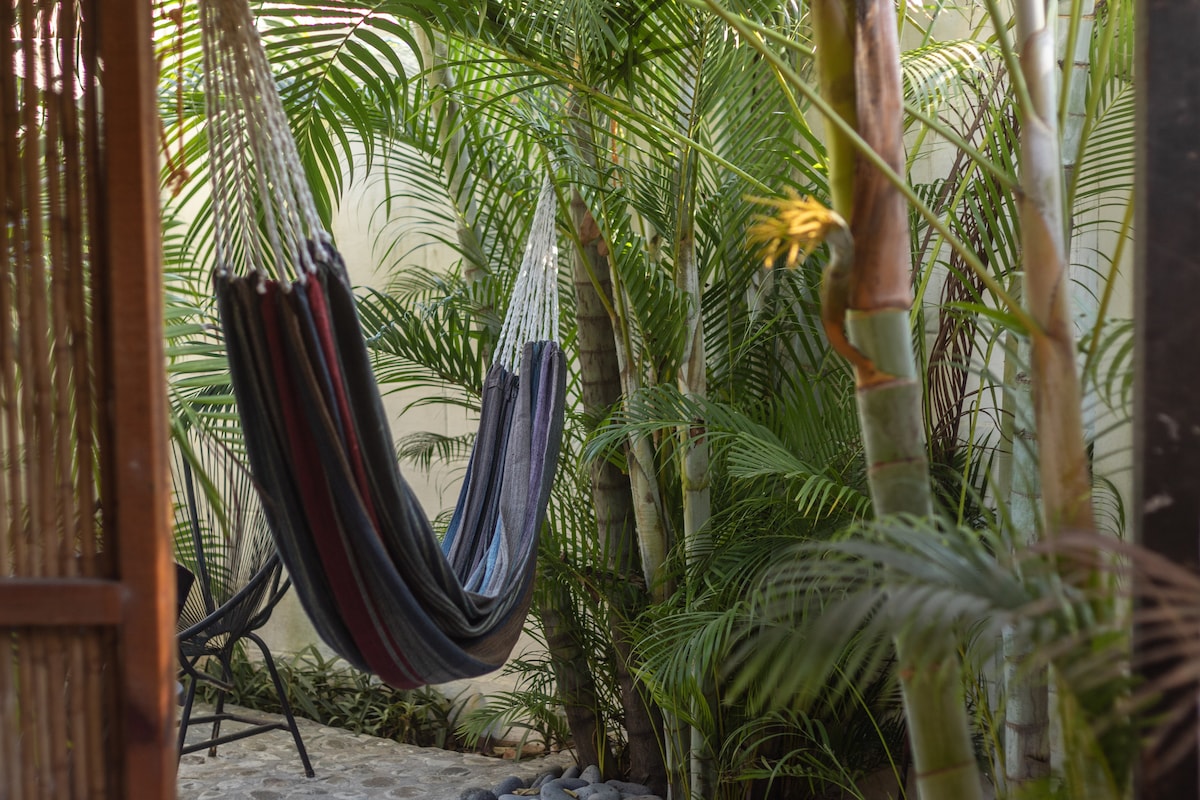 Bangun di antara pohon palem, suara burung bernyanyi dan aroma bunga tropis. Guesthouse La Canasta kami berada di pusat Playa El Zonte. Jarak berjalan kaki ke pantai (30 meter), restoran, beberapa toko kecil & taman skatepark yang berbeda. Surga peselancar: istirahat di sebelah kanan, A - Frame & Beach break semuanya di satu pantai. RUANG KELUARGA: 1 tempat tidur King + 1 tempat tidur Queen - Maks. 4 orang JUGA TERSEDIA SEBAGAI KAMAR KING: 1 tempat tidur king + meja Kirimkan permohonan kepada kami jika Anda lebih suka pengaturan ini.