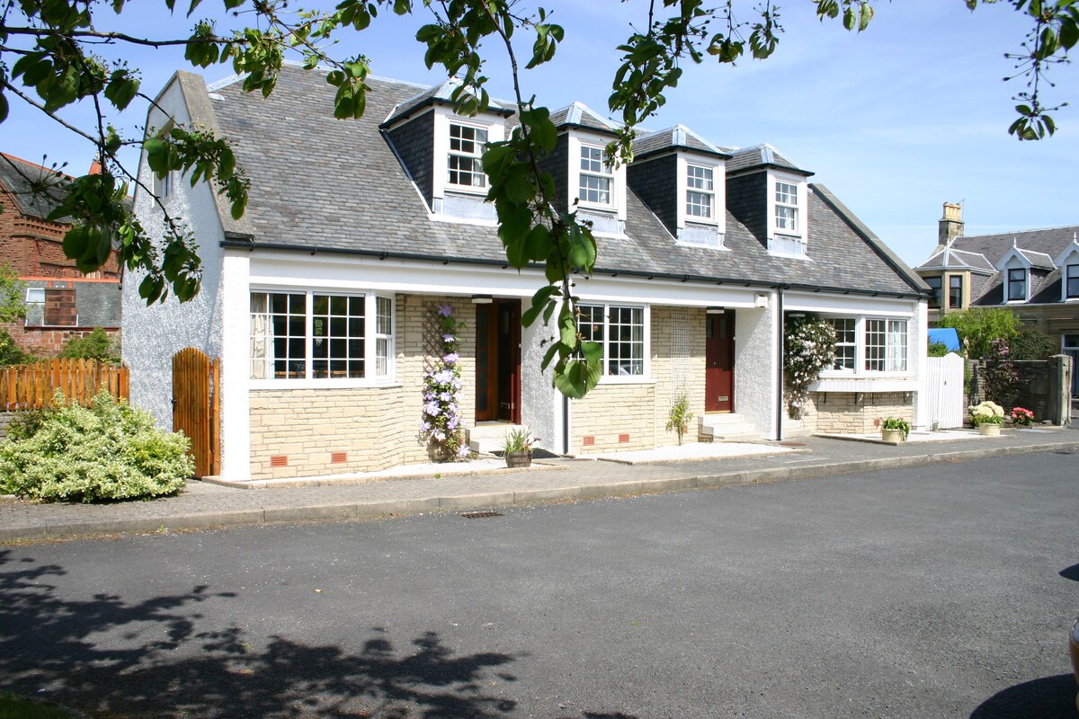 Terletak dekat dengan tepi laut, apartemen lantai dasar yang luas ini berjarak 5 menit berjalan kaki ke kota bersejarah Ayr dengan restoran dan fasilitas lokal. Apartemen dua kamar tidur bergaya menampung 5 (4 dewasa) orang, dengan api unggun terbuka, dapur makan lengkap, ruang cuci, dan kamar mandi luar biasa dengan bak mandi sandal dan pancuran terpisah. Taman kecil ke belakang. Sangat cocok untuk pasangan, keluarga, peluncur balap dan pegolf. Ramah anjing dengan pantai berpasir panjang dan taman di dekatnya.