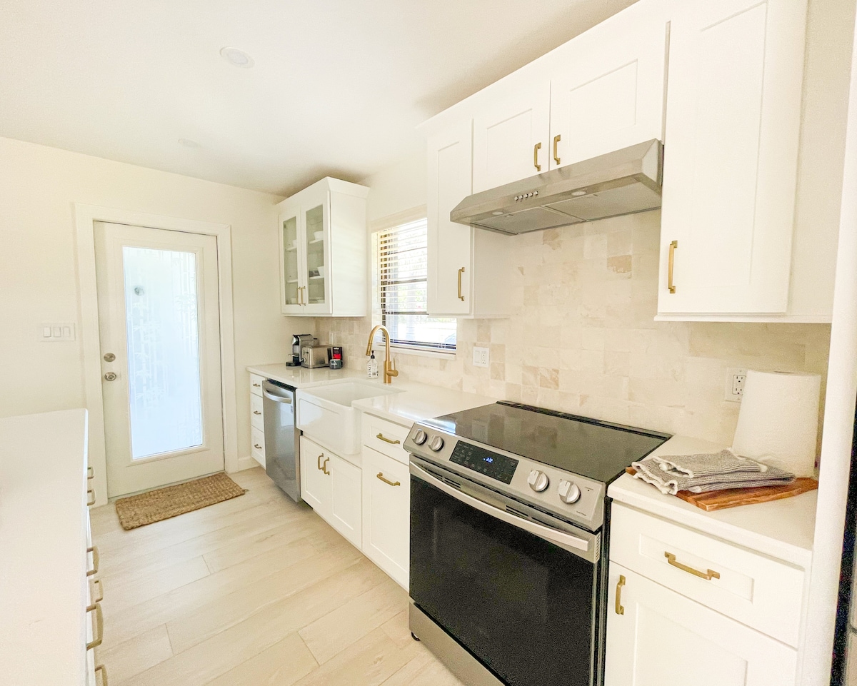 Pondok Florida Menawan tahun 1950-an. Perabotan yang canggih dan detail yang ramah menanti kenangan keluarga Anda saat Anda menikmati pesona Florida tahun 1950-an ini. Area tidur dan mandi terpisah untuk kakek/nenek/ orang tua. Tiga kamar tidur, dua kamar mandi, 2 dengan tempat tidur queen 1 dengan dua tempat tidur twin dan sofa bed queen di ruang tamu. Kapasitas 8 orang Seprai benang katun 100% super tinggi, dapur lengkap, meja luar dan tempat duduk menanti keluarga Anda saat Anda membuat kenangan di surga. Lemari khusus
