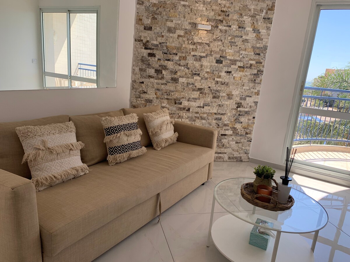 Apartemen dua kamar tidur yang direnovasi dengan indah dan luas, berlokasi nyaman di jantung Eilat dengan hanya 15 menit berjalan kaki ke pantai, pusat perbelanjaan, & bar. Apartemen ini didekorasi dengan baik dengan dapur dan peralatan lengkap untuk mendukung kebutuhan Anda selama menginap di rumah yang jauh dari rumah. Nikmati matahari terbenam yang indah di balkon yang luas dengan pemandangan Laut & Gunung terbuka lebar yang akan membuat Anda terengah - engah. Kami sangat ingin menerima Anda sebagai tamu di tempat kami!