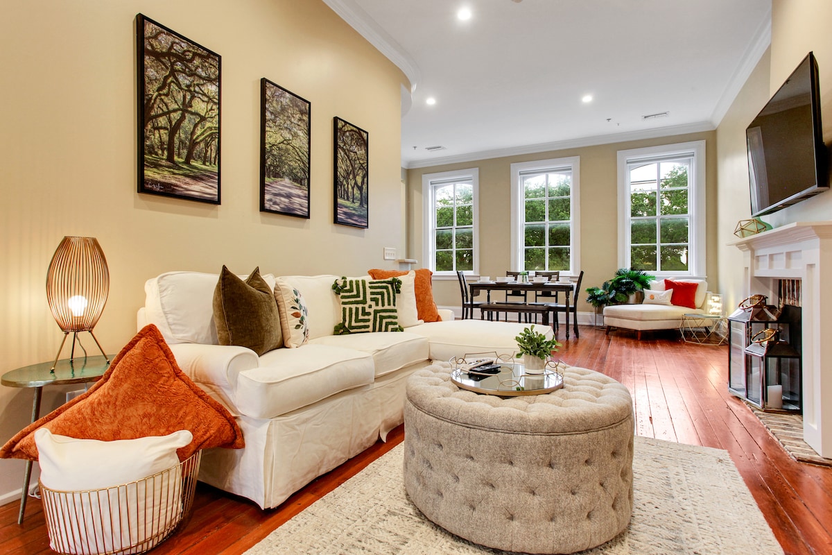 Masuki keanggunan Selatan tempat pesona dunia lama bertemu kenyamanan modern di tempat peristirahatan 2 kamar tidur, 1,5 kamar mandi yang indah ini di pusat kota bersejarah Savannah. Nikmati lantai kayu keras yang hangat, jendela dari lantai hingga langit-langit yang diterangi matahari, dan dapur modern yang sempurna untuk makan bersama. Bawa sahabat berbulu Anda—tempat kami yang ramah hewan peliharaan menyambut hewan peliharaan dengan biaya harian $50. Liburan Savannah Anda yang mempesona menanti hanya beberapa langkah dari semua keindahan kota.