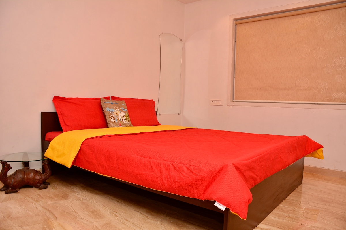 Tidak ada AC! 1 kamar+ dapur kecil + kamar mandi yang nyaman dengan teras pribadi ini terletak di jalur mewah oIndiranagar. Kamarnya kecil, dan berada di lantai 4 ( tanpa lift), namun sisi baiknya adalah Anda memiliki akses pribadi ke teras cantik yang menawarkan pemandangan matahari terbenam yang menakjubkan. Ketat untuk satu orang. Tempat ini berjarak 5 menit berjalan kaki dari pusat perbelanjaan, kafe, dan restoran seluas 100 kaki dan 12. - Anda bisa mendapatkan maksimal 2 tamu dan mereka harus pergi sebelum pm