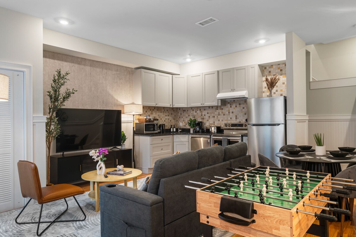 Selamat datang di Philly dan jadikan "The Prettiest One on the Block" sebagai rumah kedua Anda! Terletak di pusat South Philly, tiga blok jauhnya dari Broad Street, rumah yang indah ini dirancang dengan cermat untuk menciptakan ruang yang nyaman bagi rombongan besar keluarga dan teman - teman. Hanya 8 menit naik Uber dari Citizens Bank Park, Lincoln Financial Field, dan Wells Fargo Center, datanglah untuk melihat kami menang! (atau kalah, kami tidak peduli * suara Jason Kelce *).