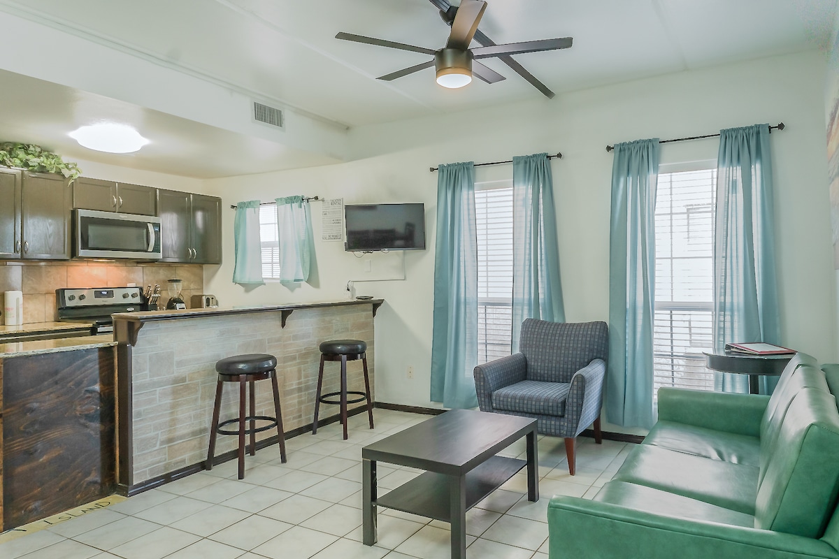 BARU DIPERBARUI! NIKMATI walk - up lantai 3 & kembang api musim panas di luar ruangan ini dengan kolam renang bersama. Tidak perlu berkendara! 3 menit berjalan kaki ke pantai! 5 menit ke distrik hiburan dengan bar, restoran, dan klub. 1/2 blok ke layanan bus gratis ke mana saja di pulau/Port Isabel! PUSAT PENATU BARU DI MASTER! BARU DIRENOVASI Tempat tidur king di master dengan kamar mandi dalam, 2'nd bdr dengan 2 tempat tidur berukuran penuh. Sofa busa memori queen/sleeper. * CATATAN - HANYA KELUARGA SELAMA LIBURAN MUSIM SEMI/SEMANA SANTA