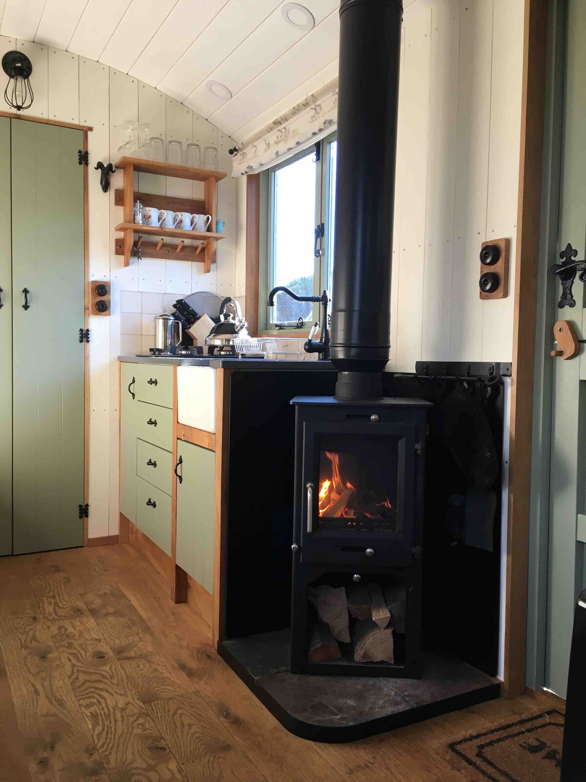 Kenyamanan yang nyaman, bak mandi air panas, pembakar kayu, di New Forest.