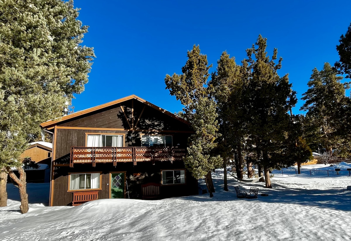 adalah chalet 2 kamar mandi seluas 1000 kaki persegi yang baru direnovasi dan terletak di salah satu lingkungan tinggal yang paling diminati di Big Bear Lake. Nikmati surga hutan yang tenang sambil dekat dengan semua. Dek tertutup & indah menawarkan bak mandi air panas, ruang makan al fresco & BBQ. Kabin ini berada di tengah-tengah Snow Summit & Bear Mountain, danau, pusat perbelanjaan, bersantap, dan restoran. Bawa anggota keluarga berbulu Anda (hanya anjing) & nikmati tanpa biaya hewan peliharaan. Nikmati bukit kereta luncur alami kami (jika cuaca memungkinkan).