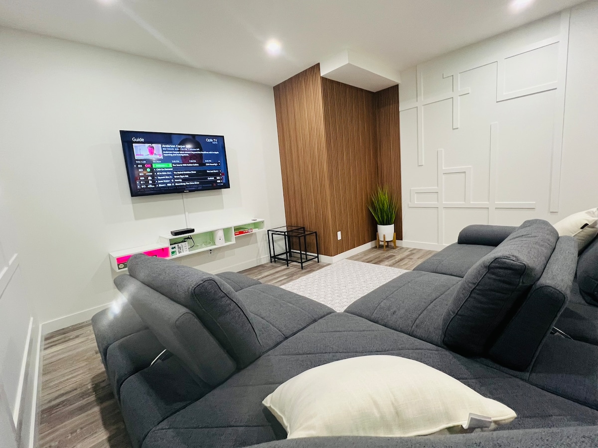 This private, modern suite offers premium stainless steel appliances, luxurious vinyl flooring, and a spacious living area with a dedicated workspace. Enjoy a King-size and Queen-size bed, cable TV, Netflix, and high-speed internet. The suite has a private entrance for ultimate privacy. 3 minutes to grocery stores, coffee shops, and banks, with easy access to Macleod and Stoney Trail. 10 minutes to Fish Creek Provincial Park and 3 minutes to Sirroco Golf Course. A perfect home away from home!