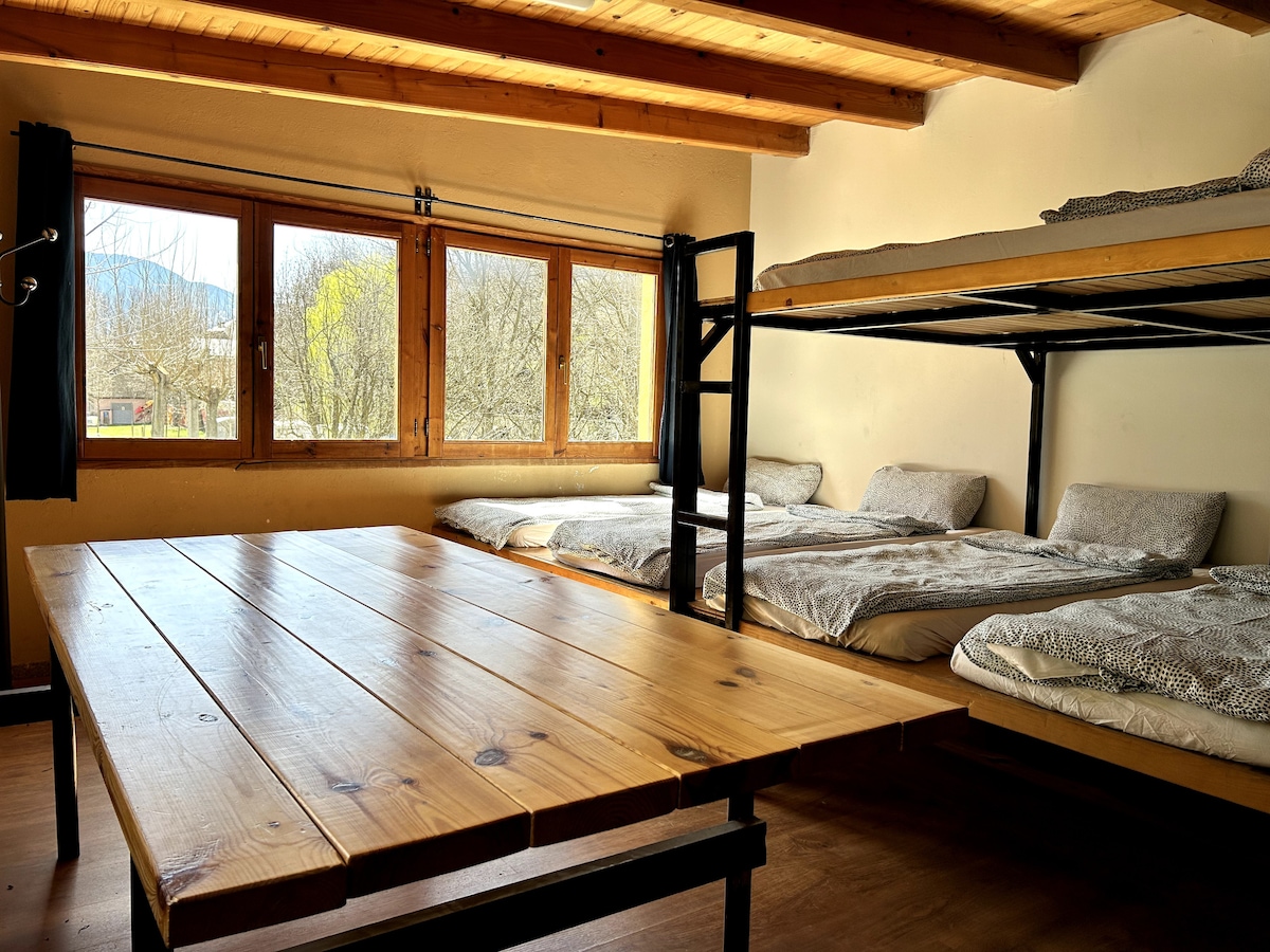 ¡Descubre nuestro refugio de montaña en Sort, dentro del Camping Noguera Pallaresa! Único por su ubicación frente al río y la calidez de su gente. Disfruta de una estancia acogedora en una habitación para un máximo de 10 personas. Camas tipo litera, almohada y sábana bajera incluidas. Debes traer tu saco de dormir/mantas y toallas. Equipada con una amplia mesa para comer con vistas a la montaña, microondas y nevera en la habitación. ¡Reserva ahora y vive una aventura en los Pirineos!